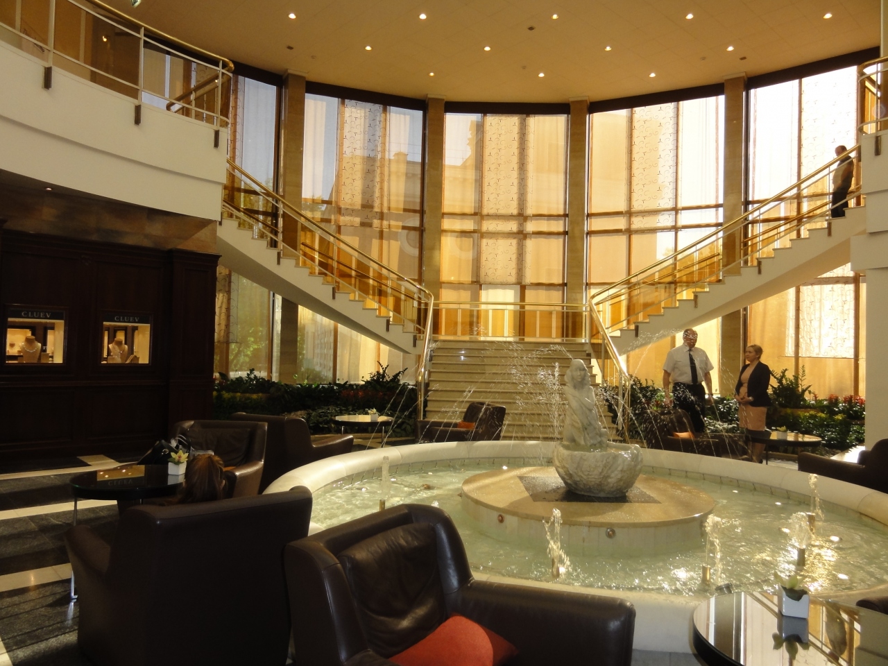 ロビーには噴水があり、天井もガラス張りのドームになっていました。