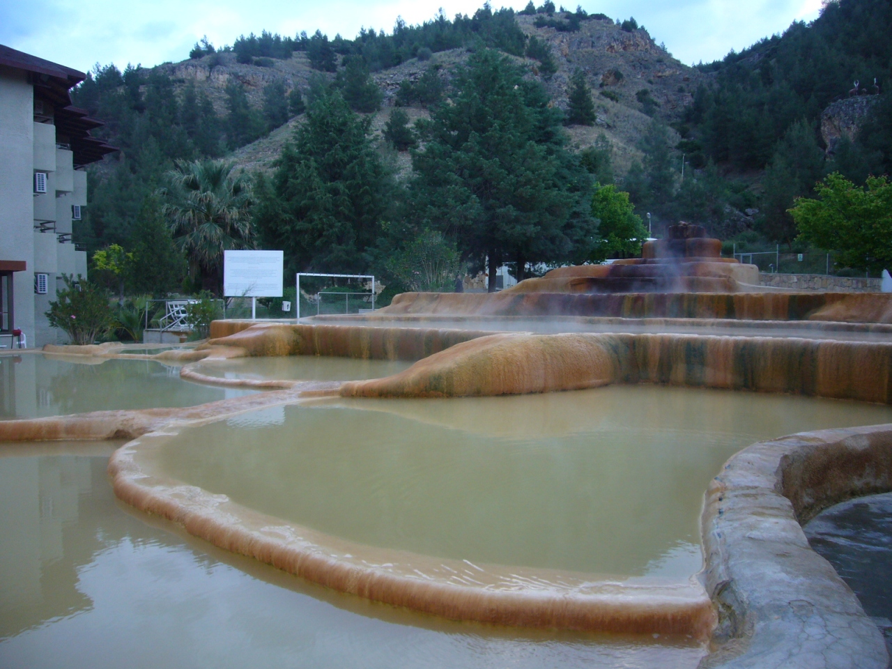 ツアーで利用しました。ツアーのため宿泊料金はわかりません。カラハユットの街外れにあり、まだ開拓・増設中の地区のようです。外温泉はプールの上に石灰棚風に作ってあります。お部屋でも温泉水が出ます。お湯は鉄分を含んだ茶褐色です。団体客向けのホテルのようで、中国人/韓国人も多くいました。