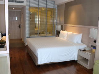 メインロードからはずれて、ロイヤルクリフの丘への途中にあり、ソンテウ(乗り合い)も行かないので、少し不便。ホテルは雰囲気もあり、部屋も広くてきれいなのでホテル自体は悪くない。中心へは、ホテル前のバイタクを使うか、少し歩いてソンテウのルートまで行くといい。