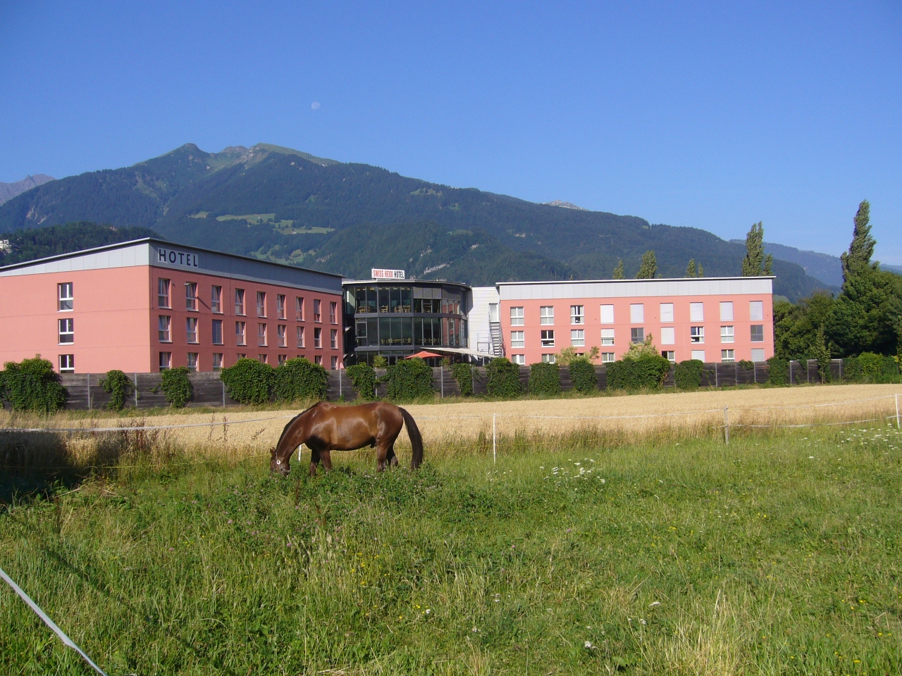 このホテルは、マイエンフェルト駅から村とは反対側の周囲に何もないところに建っています。プレハブっぽい感じの建物で、あまりスイスらしさは感じられません。