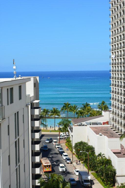 朝食付きに魅せられてツアーで宿泊。ビーチから1ブロックあるので、オーシャンビューは期待していませんでしたが、建物の隙間からかなり見えました。オーシャンフロントとの違いははっきりあります。朝食はコンチネンタル風で、品数は少ないですが、日替わりでの料理もあります。ビュッフェ式です。プールサイドのテーブルでテーブル数も少ないので、部屋に持って帰る人もいました。油断すると鳥が食べにきますので、追い払いながらの食事でした。1階にローソンがあり、日本食やオデンも置いてあり、とても便利です。部屋にある水は有料でしたので、もっぱらローソンで調達。部屋にはソファーがあり、娘夫婦とテイクアウトの食事をとることもできました。タクシーを呼んでもらったのですがなかなか来ず、催促をフロントにしたんですが、日本語は通じず、単語の連発で何とかできました。全体的にはコストパフォーマンスが良く、問題ありません。