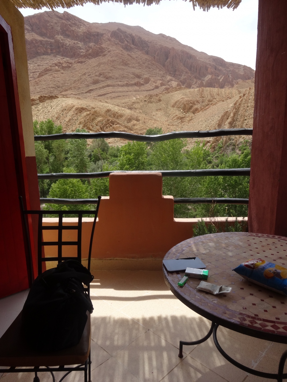 ティネリールから車で40~50分程度のトドラ渓谷沿いの小さな村の中にホテルはありました。10室程度と小規模ですが、その分融通が利きます。食事つきのプランだったので時間帯を訊いたところ「24時間いつでも好きなときに好きな場所でどうぞ」と言われました。施設内にはテラスがいくつかあり、プールもあります。渓谷に沿うような造りなので階段が多いため、足の悪い方や年配の方には向いていないと思います。
