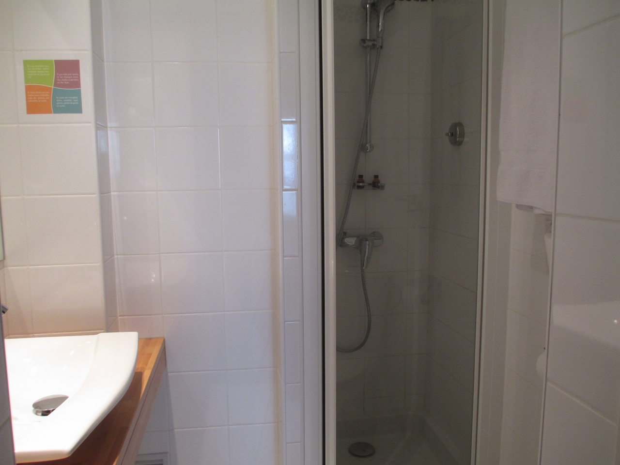 バスルームは狭く、バスタブは付いていません。シャワーブースは特にすごく狭くて