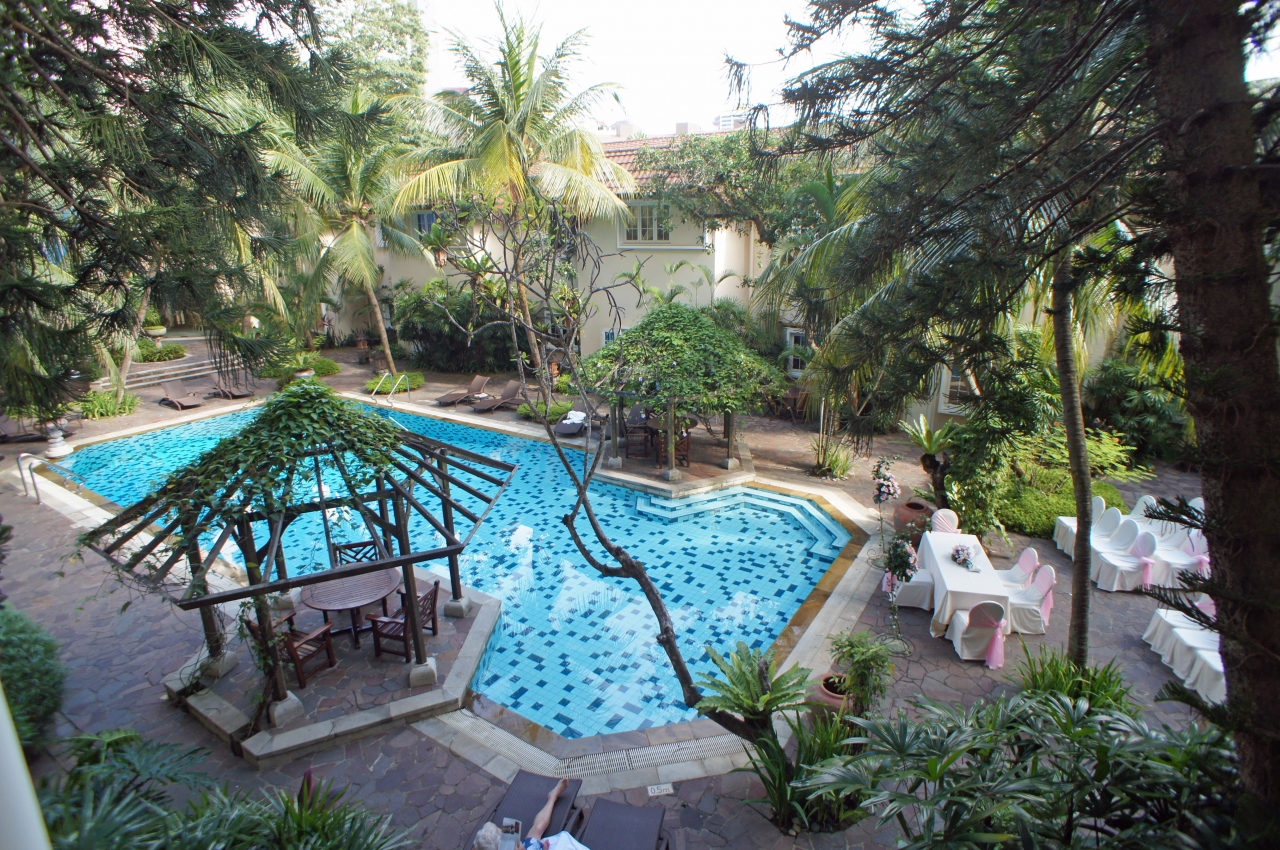 シンガポールのホテル選択では苦労しました。歴史あるコロニアルホテルが好きなのですが、ラッフルズに泊まるほどの余裕も無く、割り切って安いホテルと思っても10,000円を切る様なホテルも少なかったりこれでこの値段と言う印象を受けるホテルばかりでした。そんな中で歴史あるホテルで20,000円少しで泊まれるグッド・ウッド・パークが選択肢に挙がりました。朝食を付けると金額が上がるし、シンガポールではいろいろ食べたい朝食もあったので問題ありませんでした。フロント周辺はアフタヌーン・ティーのお客や週末は結婚式やパーティのお客が多くて落ち着ける雰囲気ではありませんでした。我々の宿泊した奥の棟はバンケットの奥にありますが、廊下にセキュリティの扉があってその奥はとても静かでした。木々に囲われたプールもとても雰囲気が能く静かな時間が過ごせます。ただ、週末の日によってはパーティなどで使われるようでした。今回ほとんど外出してホテルに居なかったのですが、地かい滞在することがあればプールでのんびりしたいものです。