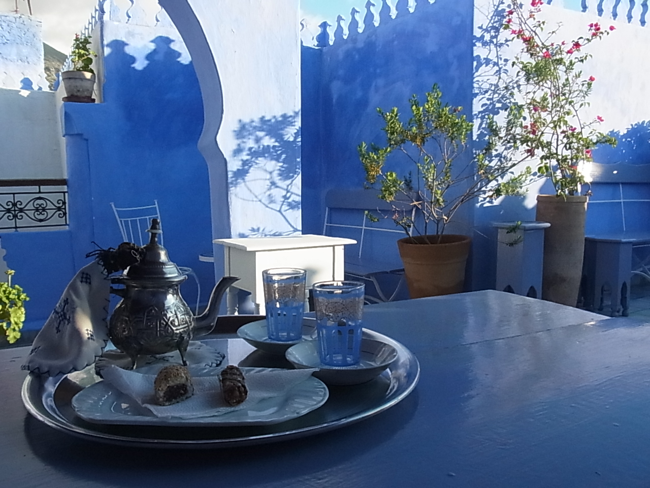 主な対応は男性の方でした。シャウエンの歩き方を詳しく説明してくれ、度々ミントティとモロッカンスイーツをふるまってくれ、これらを屋上のテラスで頂きとても素敵なひと時でした。