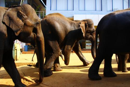 孤児院まで行かなくても目の前をたくさんのゾウが行進します。