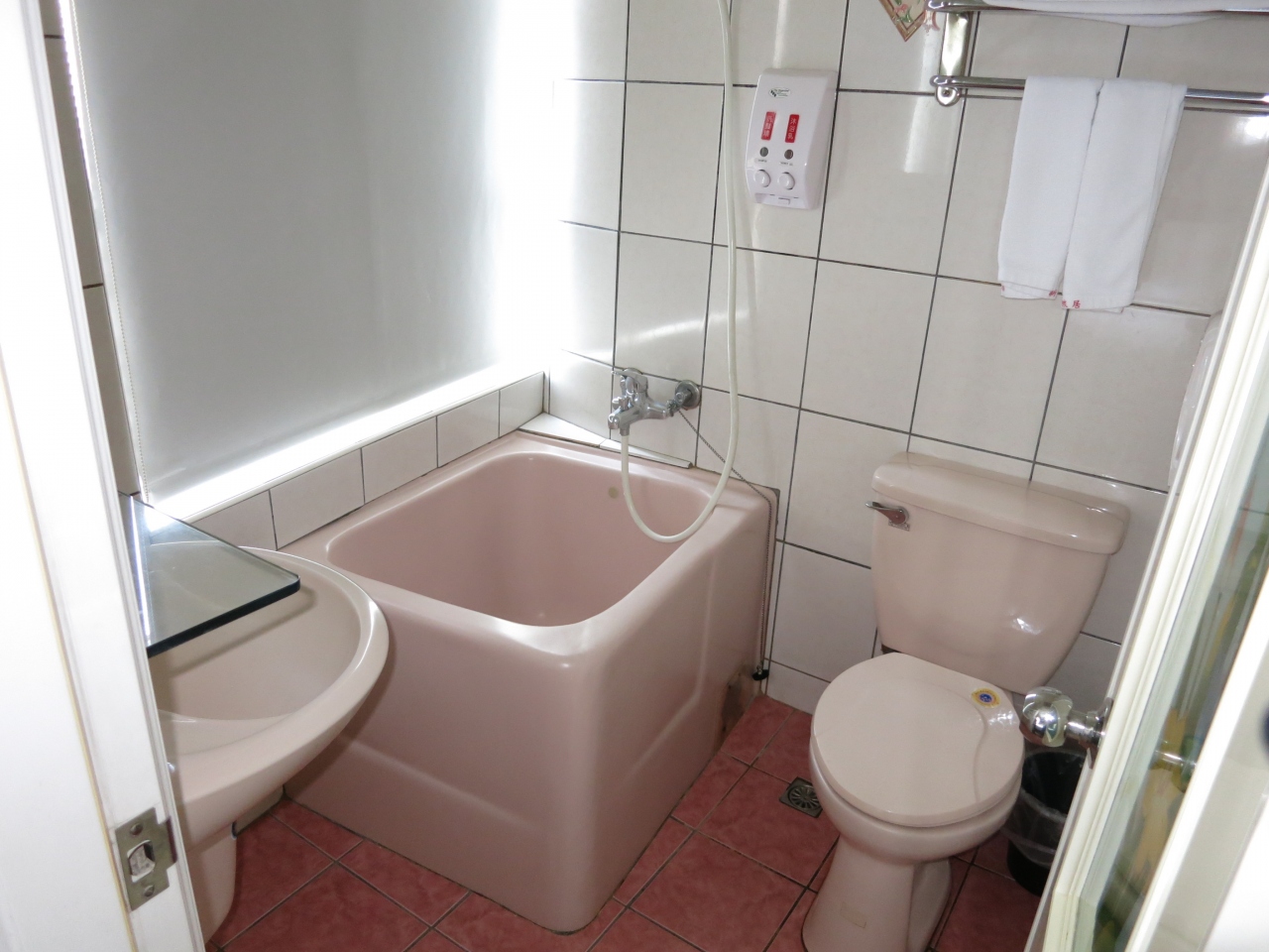 部屋も大変窮屈です.バスルームも狭いし、こんなバスタブがあったのかと言うほどバスタブが小さく窮屈でした.ただ湯はちゃんと出ていました.廊下は人がやっとすれ違える程度の幅しかなく、日本では確実にアウトでしょう.非常階段の表示はありました.朝食はフロント前のスペースで頂きます.