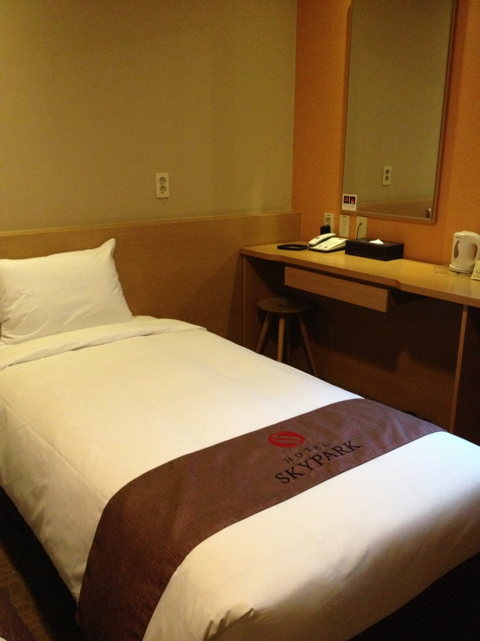 ツインのお部屋に友達と2人で宿泊しました。お部屋、バス、トイレも清潔で、気持ち良く過ごせますが狭いので、大きなスーツケースをふたつ広げてしまうと、歩く隙間もありません。アメニティはETUDE HOUSEで揃えられていて女性には嬉しいです。