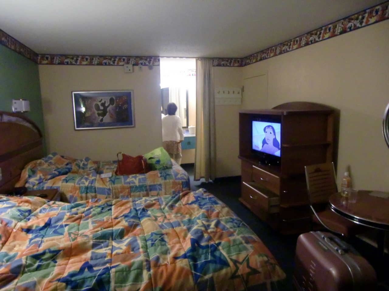 格安でディズニーの世界を楽しめます。敷地が広いので、フロントから遠い棟にあたるとスーツケースを転がしながら延々歩くことになりますが・・・。ピアノの形のプールサイドをブラブラ歩くのが苦にならなければOKかも。各部屋に小さな冷蔵庫もありました。宿泊したときはメンテナンスで使用不可でしたが、順々に復旧するとのことでしたので、今なら使用できると思います。