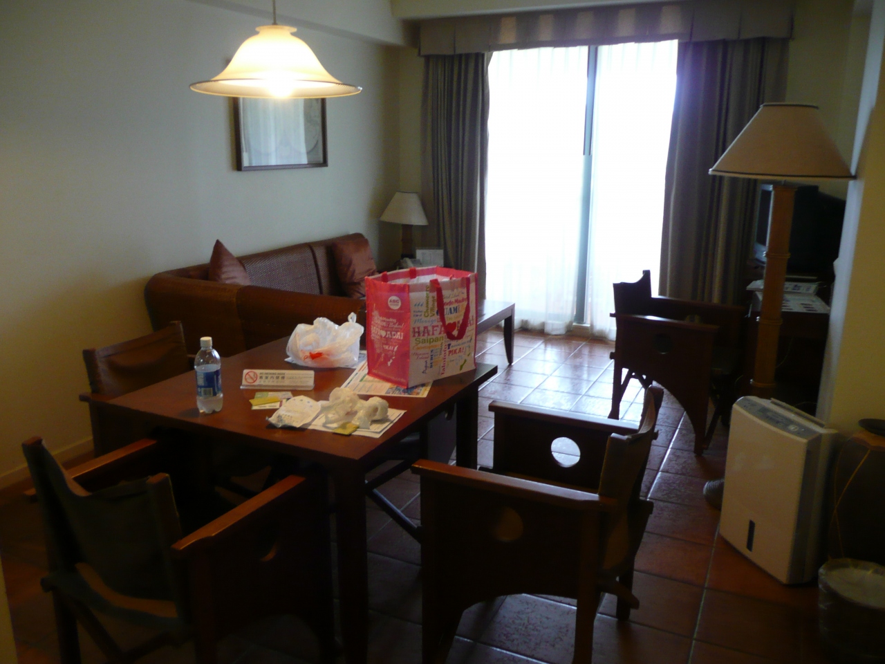 ご存知日本企業のホテルで、プロ野球のキャンプとしても利用されている。広大な敷地内にはホテルの棟が5つ?くらいあってゴルフ場やテニスコートなども併設してある。とにかく広くて、フロントからホテル各棟までは大型ワゴンで24時間送迎してくれる、勿論無料。今回はコンドミニアムを利用。特段綺麗ではないが2ルーム4ベッド、ダイニングなど結構広い。グアムでは有害な害虫以外は殺すこともなく、ゴキブリも部屋にいたりするが当然クレームの対象にはならない。 立地はタモンベイから車で50分くらい離れているが、タモンベイまで無料定期バスが出ている。また日本の免許証でレンタカーを借りることが出来、運転もOK。但し交通ルールがすこし違っているので注意が必要だが、島内一周も全然楽勝。日本語対応スタッフも常駐で安心です。割と近くに大型のショッピングセンターもあり、たいていのものはそろいます。