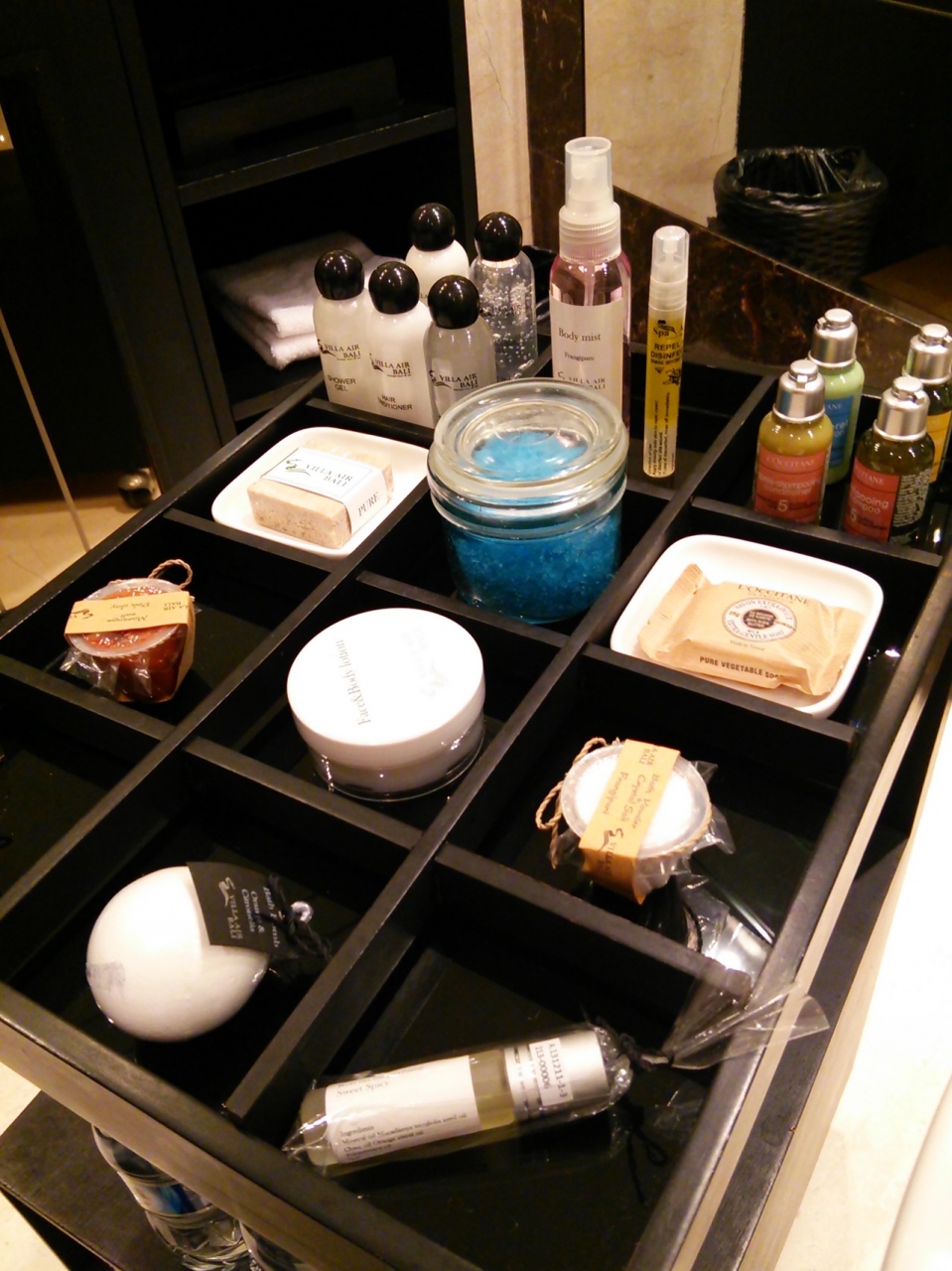 ロクシタンのシャンプーコンディショナーや、ソープなどが設置され、減ってきたら追加もしてくれます。