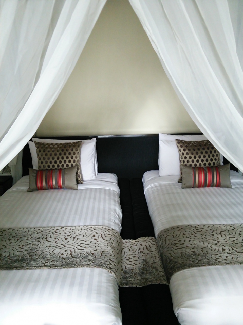 因みに、バスルームにもありましたが、夜のメイキングの時に各ベッドサイドにもペットボトルのアクアを1本ずつ置いてくれていました。