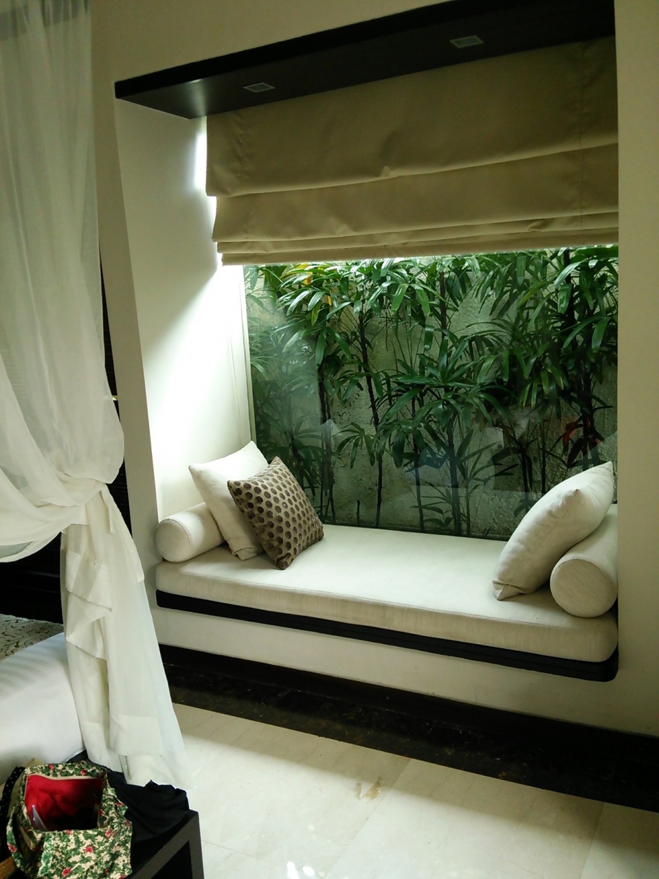 リネンはジムトンプソンではなさそうでしたが、昼間のベッドメイキングで追加される美しいクッションがそうなのかな?