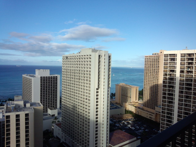 部屋指定なしのツアーでしたが、運良く34階だったため眺望良好で、すぐ近くのホノルル動物園を見下ろす感じ(もちろん動物は見えないけど森のようで気持ちがいい)、ダイヤモンドヘッドも近くに見えるし海もパーシャルながら眺められます。