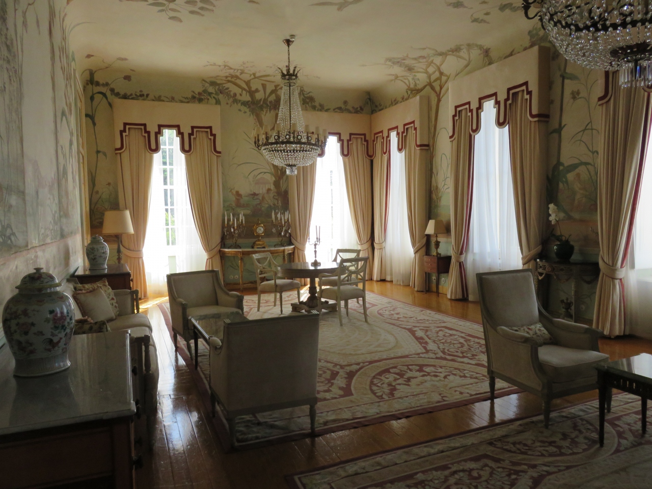 ホテル内に色々な見学できる部屋があります。まるで城の中にいるみたい。1階の部屋は天井がとても高く、4~5mもあるのではないでしょうか。どこもシャンデリアが輝き豪華。中庭の散歩も素敵です。一生に一度は泊まってみたいホテルです。