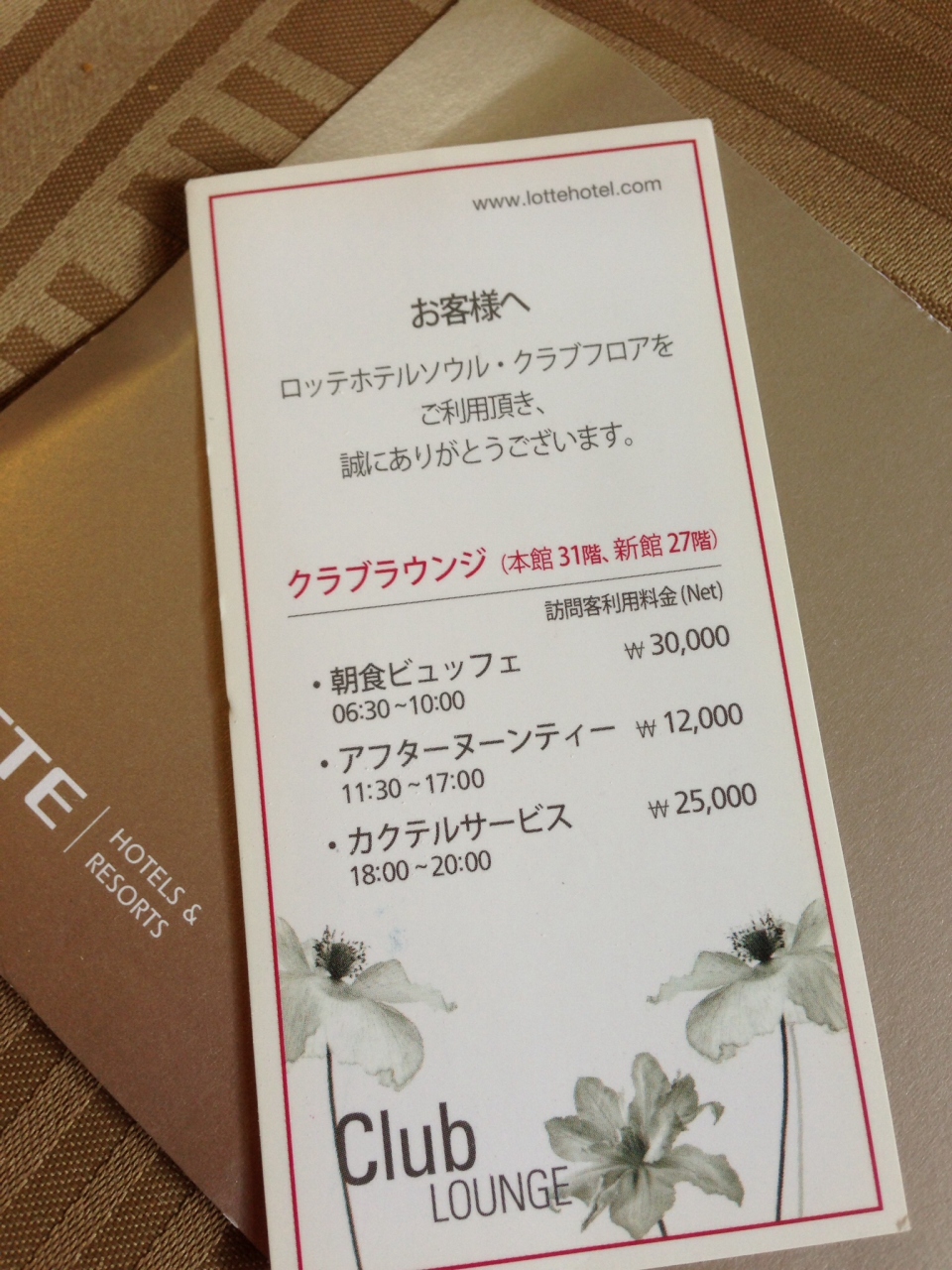 クラブラウンジの居心地の良さと比べると、1Fはガヤガヤ、コンシェルジェは人だかり、団体さんの円陣にあーやっぱりロッテってこういうホテルなんだなぁと。