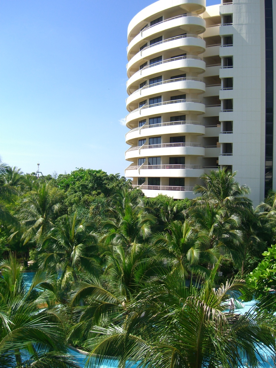 広大な敷地のホテルです。ビーチが目の前で、道路を横断したらすぐです。プールではのんびりできて、楽しかったです。チェアに横たわって、カクテルを飲んで、プールに入って、とても贅沢な時間を過ごせました。朝食はビュッフェスタイルで、外のプール際の席か、屋内か、混んでいなければリクエストも聞いてくれます。歩いて行ける範囲に、レストランやショッピングできる所もあり、便利でした。ただ、街まで行くのには少し離れているので、タクシーを使いました。部屋に入ってすぐ、部屋の電気が切れて真っ暗になったのには、少々びっくりしましたが、電話をしたらすぐに来てくれて、すぐに回復しました。