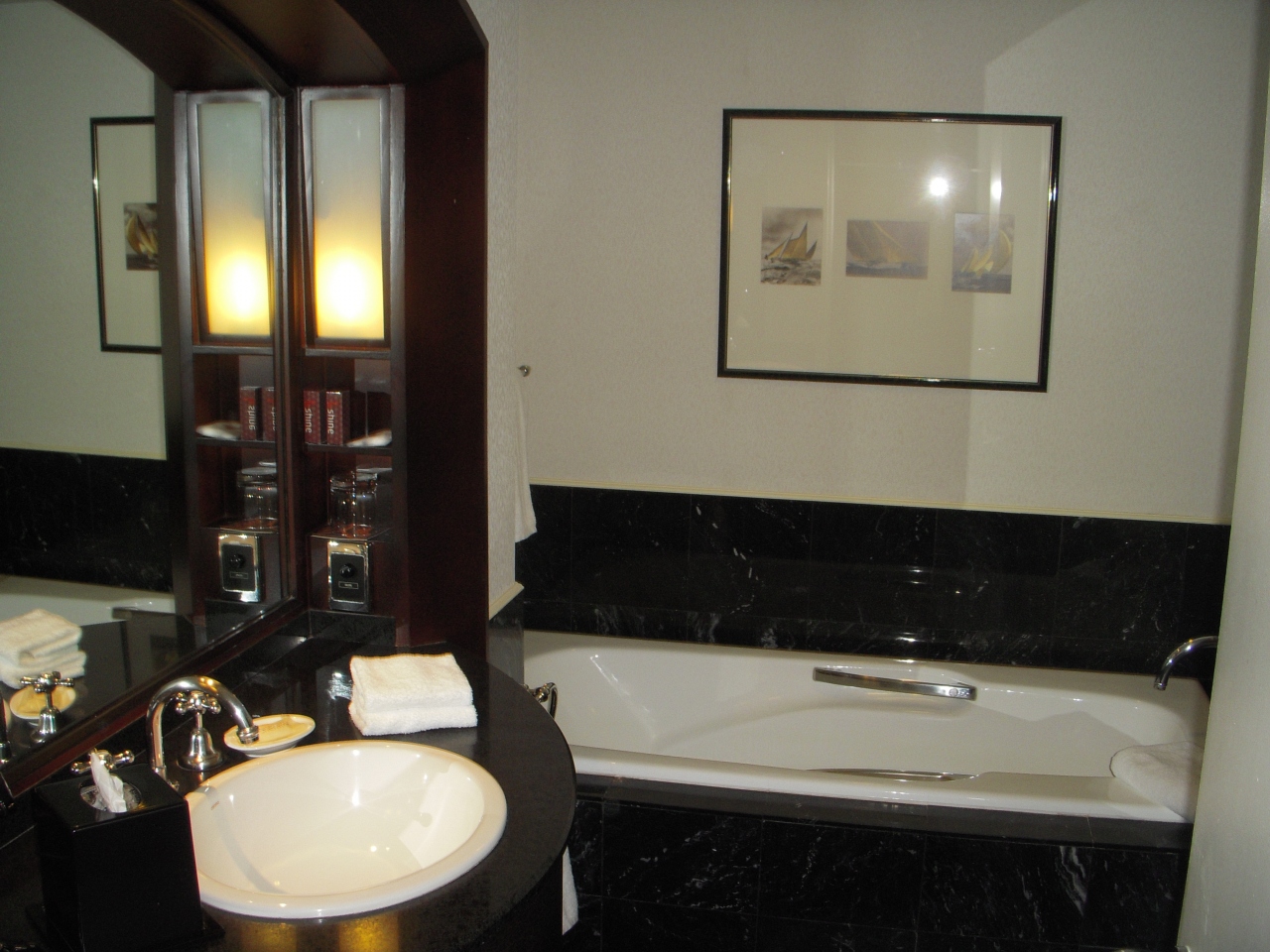 客室はモダンクラシックスタイルの優雅な内装で、バスルームも大理石の内装がエレガントでした。