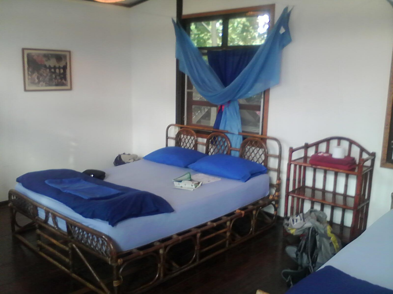 エアコンなしのファンルームで350THB。シャワーとトイレは共同です。夕暮れ時にはメコン川に沈む夕日を眺めることができます。レセプションで部屋ごとのルームナンバーの入りの手帳に食べ物は品目と値段を書いて置いておくと作ってくれる。飲み物も手帳にかいて、冷蔵庫から取っていけばOKというユニークなスタイル