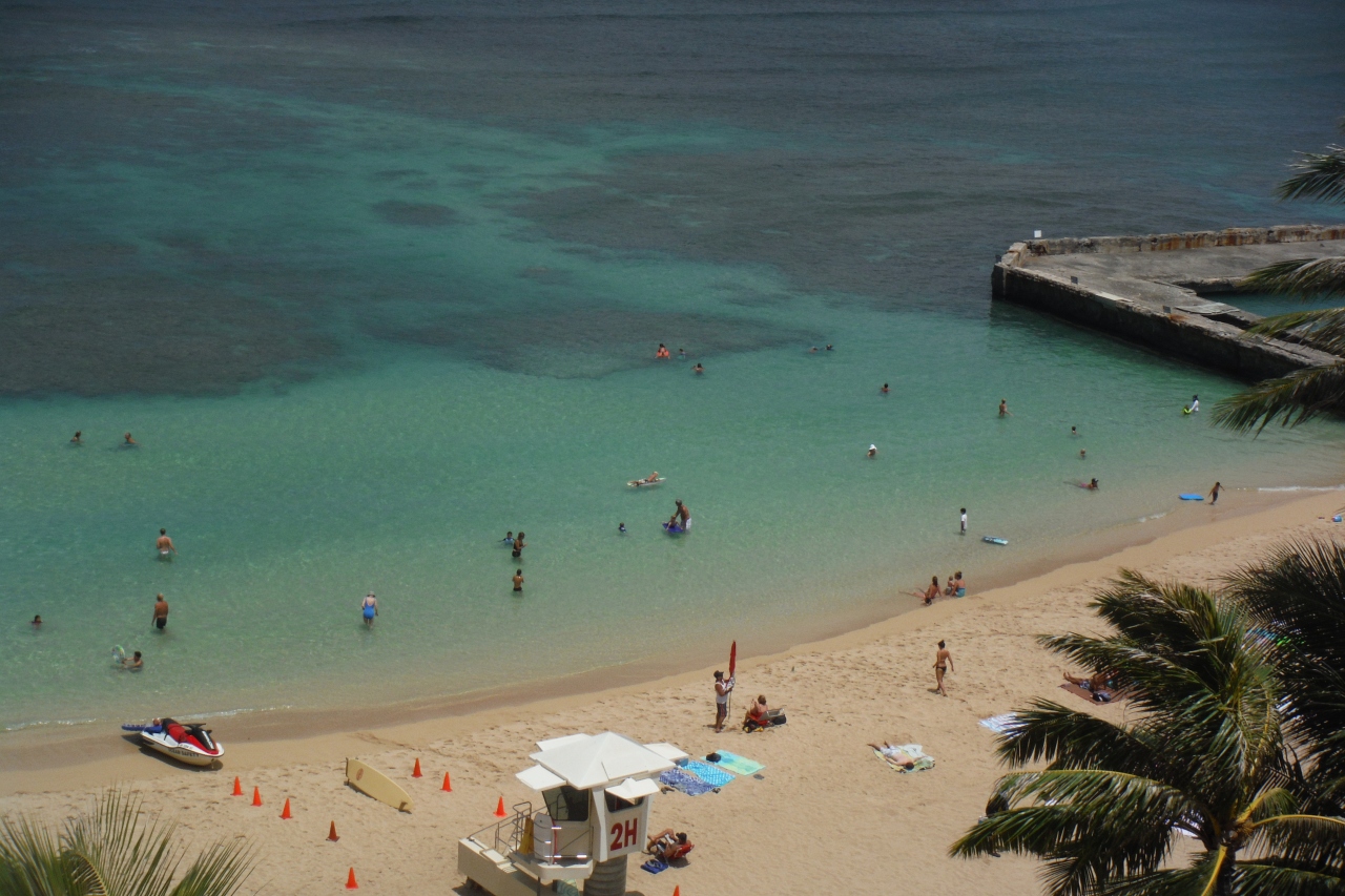 目の前のカイマナビーチはお値打ちものです。スケール感はありませんがここがあれば、ハナウマ湾に行かなくてもシュノーケリングは楽しめそう。午前中はワイキキビーチの数倍の透明度です。ホテルでタオルとゴザは貸してくれますが、ビーチベッドなどは、はなさそうでした。