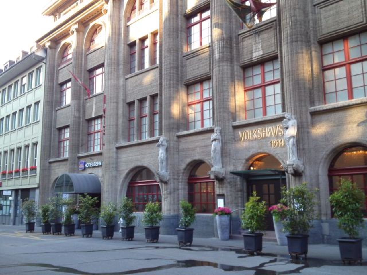到着が夜10時ともう暗くなってしまっていたのでその時は気付いていませんでしたが旅行会社から事前に貰っていたガイドブックにはもう一つのホテルしか表記されていませんでした。ホテルのグループガイドブックを見ると2014版でNEWとなっているので仕方ないですね。以前はhotel Bernだった様です。部屋はツインですがベッドがくっついています。サイドテーブルがあって動かせません。シンプルだけど落ち着きます。最上階の為天井が斜めで山小屋の様です。洗濯物を干すロープが付いています。エアコンは無いのですが大通りに面して居ないので窓を開けても車はほとんど通らず静かですが隣のフランス教会が何故かしょっちゅう鐘を鳴らします…15分おき?と思う位かな?。レストランはオープンテラス席、普通席(バー用)、朝食用席になっています。無料ビュッフェ朝食用だけでなく一般の方が朝食のみでも利用されています3つの値段にカテゴリー分けされています。
