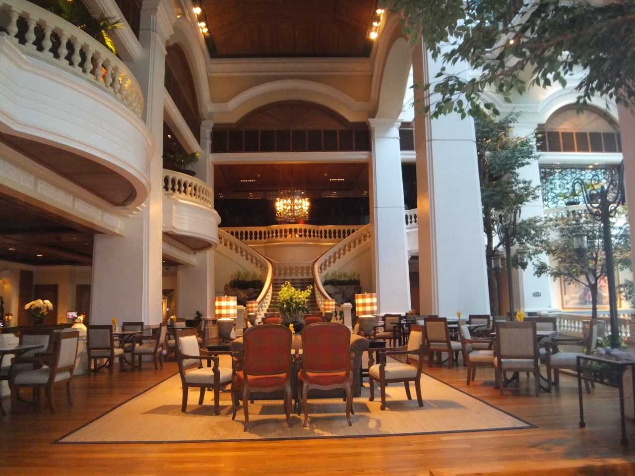 エントランスを入ってまずはビックリ。吹き抜けの空間に木々がたくさんありここはどこ?ってなりました。ロビーにカフェがありとても素敵な雰囲気でした。お部屋は少し狭さはありましたが使いやすかったです。プールものんびりできました。プールサイドでの食事もおいしかったです。エステも利用しましたが広い個室で丁寧にマッサージをしてくれてとてもよかったです。料金は高かったです。朝食は満足のいく内容でした。おいしかったです。スイカジュースは最高です。エラワン・プームが隣にあり毎日お参りしました。小さいですが有名な場所です。このホテルは王室御用達と聞きました。とても上品なホテルで大好きです。