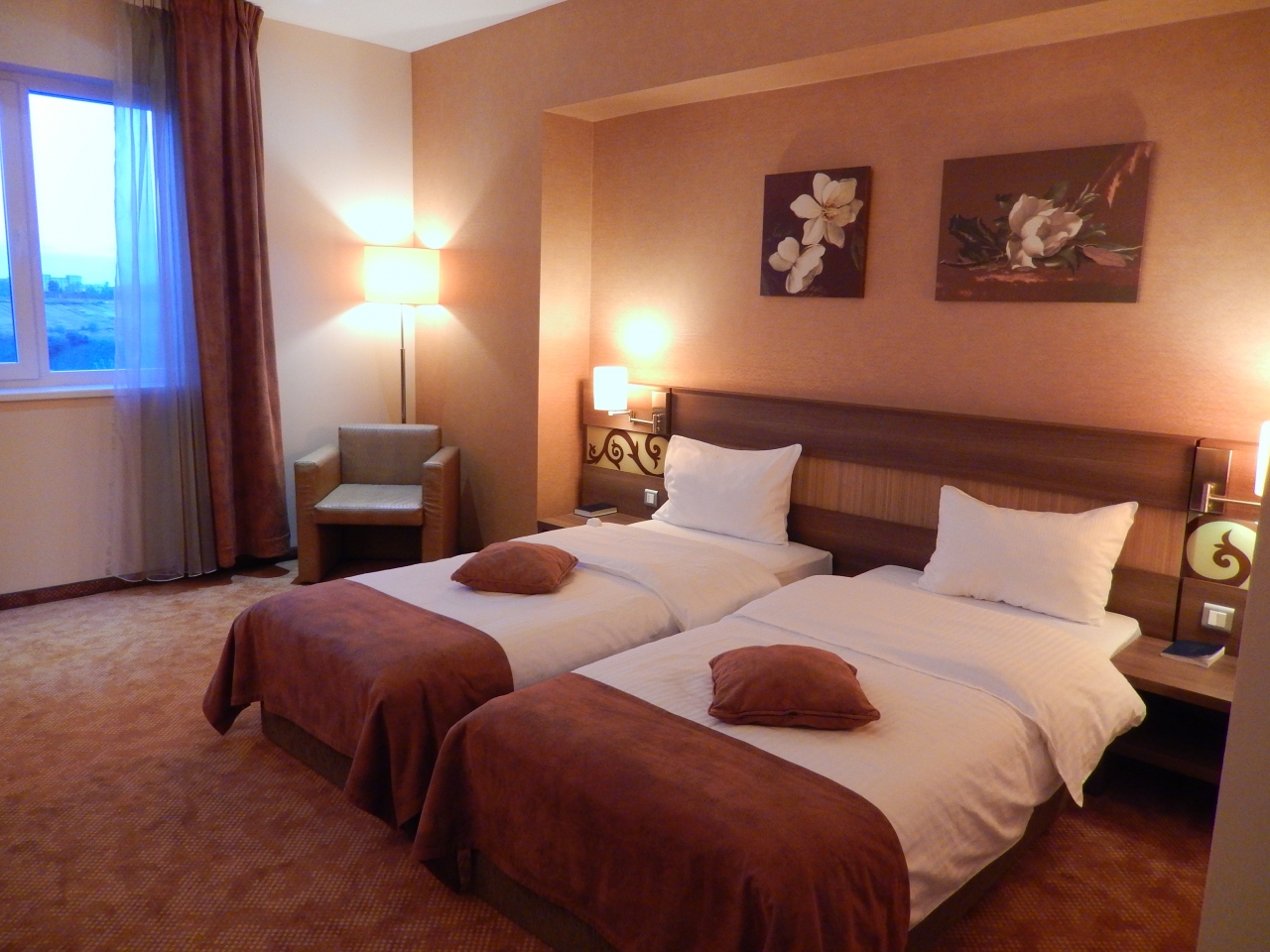 郊外にある高層ホテルです。周りは見渡す限りの湿地帯。その昔ブカレストが沼地帯だった頃の名残だとか。ホテルの隣にこれも巨大なカルフールが見えているのですが、なかなかたどり着かない。5分以上かかりました。