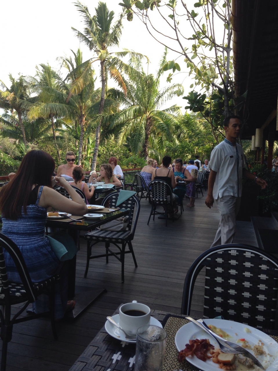 敷地がとても広く、お庭もお手入れがしっかりできていて緑がとても綺麗です。ブレックファーストは緑に囲まれたオープンレストランでゆっくりいただけとても癒やされます。種類も豊富で2泊では食べきれませんでした。オーストラリアからのバカンスの方が多かったです。ホテル前のレギャンビーチは波がかなり高いので泳ぐことはかなり難しいと思います。海の見えるガゼボで波の音を聞きながらぼーっとビンタンを飲むのは至福の時でした。