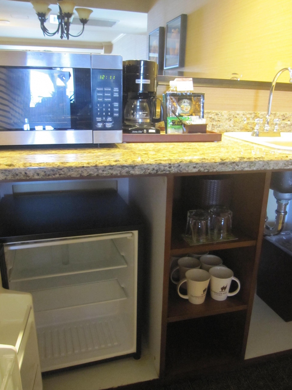 お部屋には、2年前はなかった電子レンジがありました。冷蔵庫は相変わらず冷えがイマイチ。ミネラルウォーターは初日のみ2本あり。