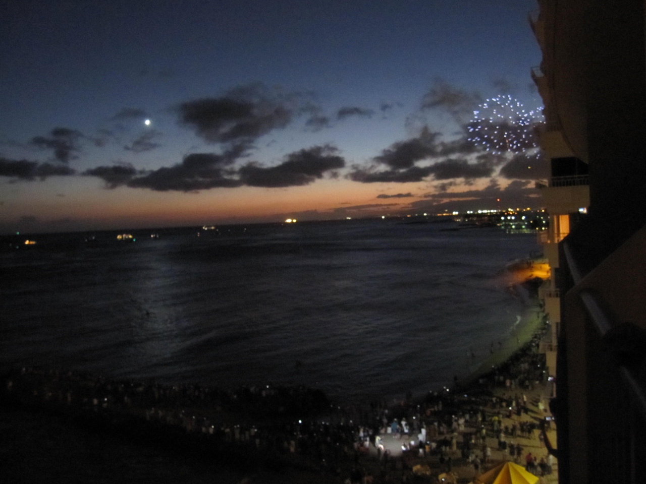 やはり、このオーシャンフロントの景色はすばらしい。ラナイでのんびり、またベッドでうとうとしながらでも見える、ダイヤモンドヘッドとビーチの景色は大満足。