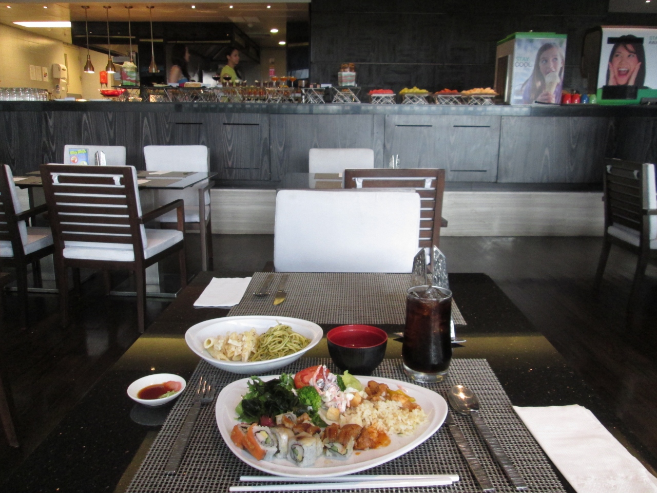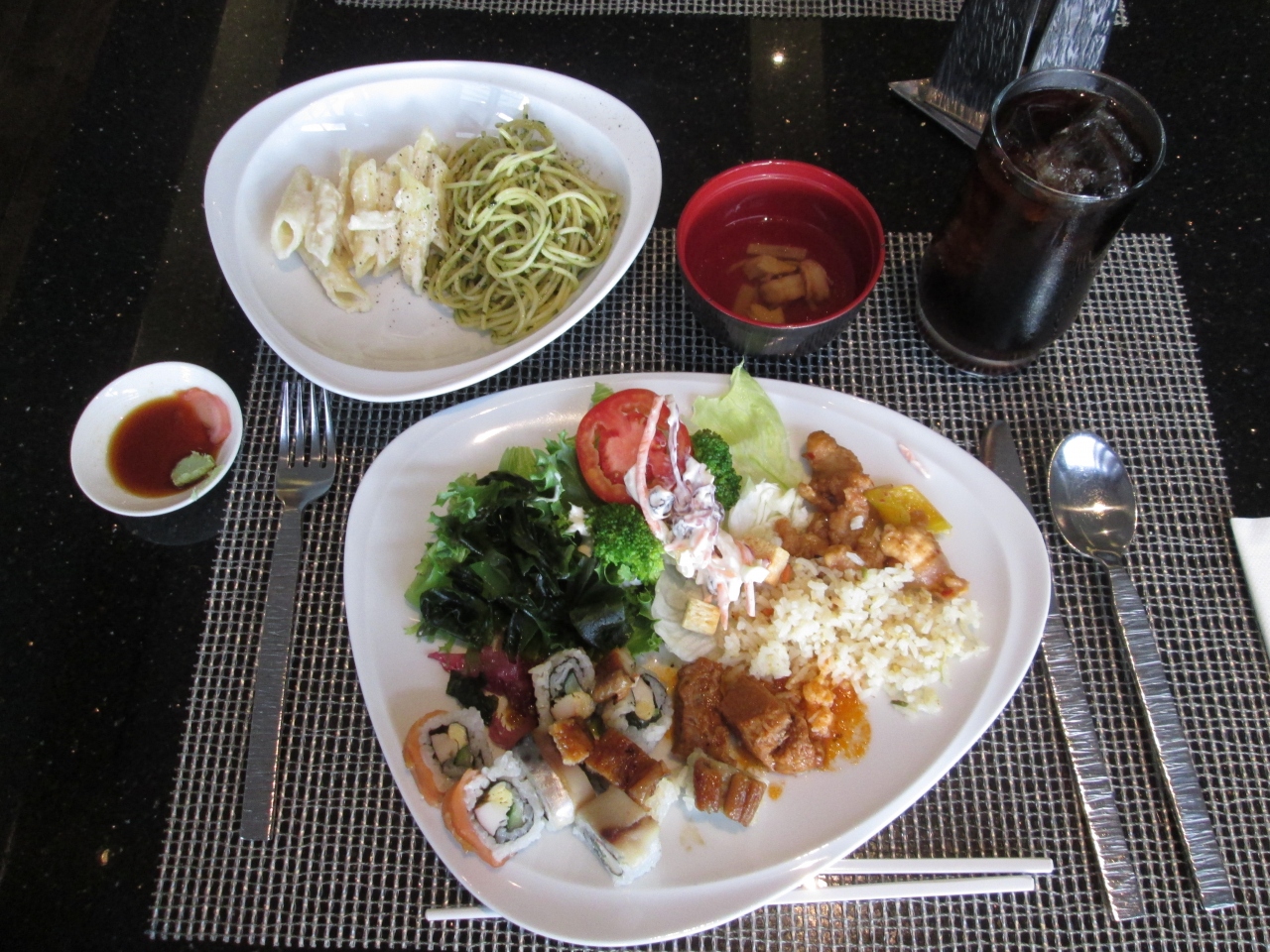 ホリデイインホテルの1階にあるエステ・スパ店「静」でパッケージコースを利用すると、8階にあるレストランでランチビュッフェが食べれるクーポンがもらえます。今回は種類豊富なメニューでうなぎの寿司が置いてありました。日曜日は除きます。
