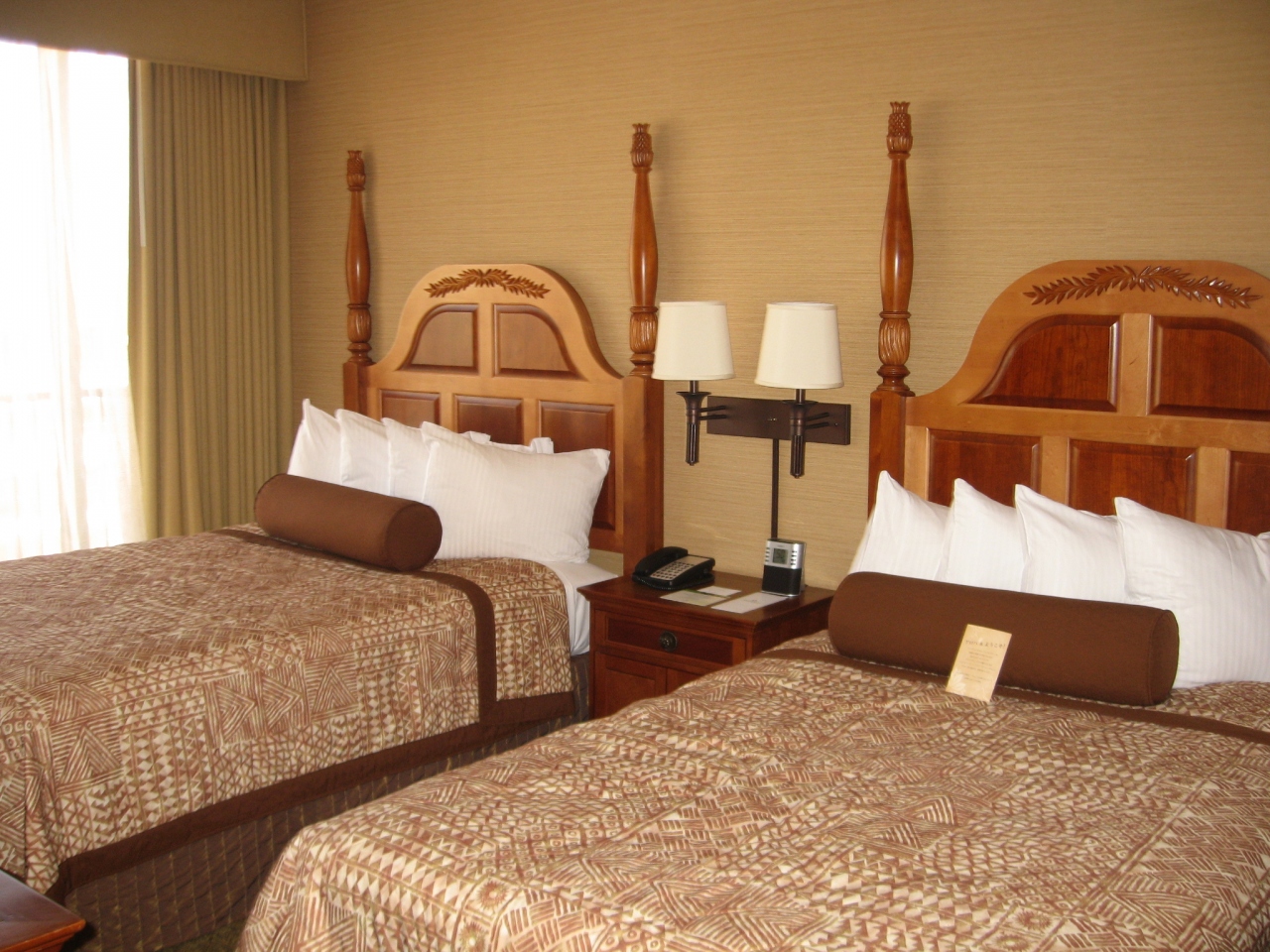 でもスタッフは皆さん感じ良かったですし、リノベーションしたばかりのハワイらしい落ち着いた内装もとても素敵で、1階のフロント辺りもオープンエアで南国感満載でハワイに来たことを実感させてくれました。