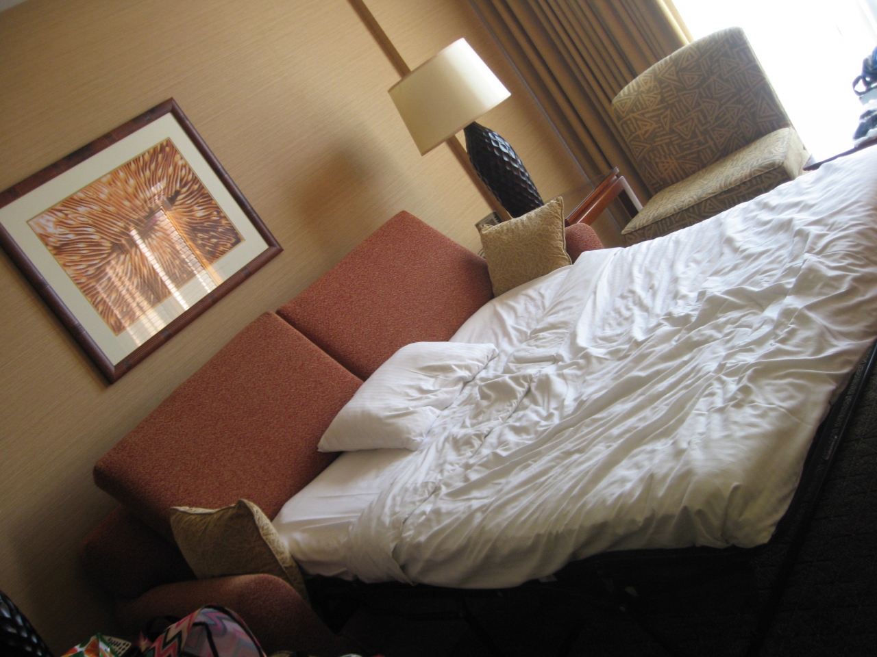 ベッドはベッドルームにダブルが2台(部屋によってはキング1台)、リビングルームにクイーンサイズのソファベッド1台です。一人1台ずつ使えて、疲れが取れて良かったです。