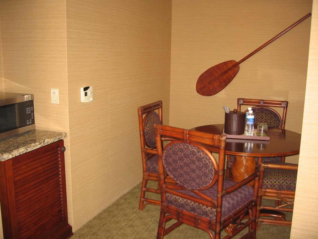 何よりスイートの良い点は、電子レンジがあることとダイニングテーブルがあることです。夕食のプレートランチの残りを、翌朝チンして食べたりと、殆ど部屋食で済ました我が家にとっては非常に有難かったです。