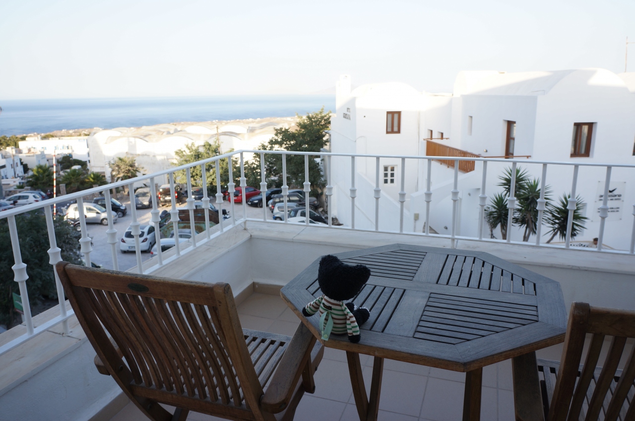 本当はカルデラ沿いのホテルに泊まりたかったのですが、スーツケースを運ぶときスタッフが不在の時は自分たちで運ばないといけないと聞き断念。