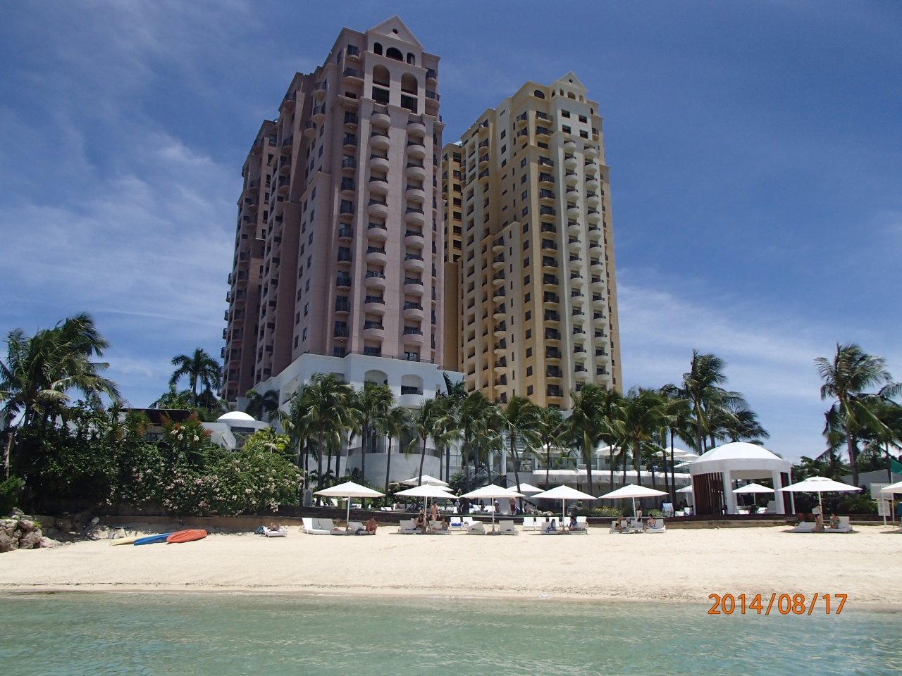 プライベートビーチとプールは小さかったのですが、アクセスしやすく、お客さんも適度に少ないので楽しめました。ビーチでのシュノーケリングはまあまあかな。一応熱帯魚も見れますがアイランドホッピングで行った海やグアムのイパオビーチなどに比べると透明度、魚の数ともに落ちます。でもゴミはなくきちんと整備されて気持ちよかった。