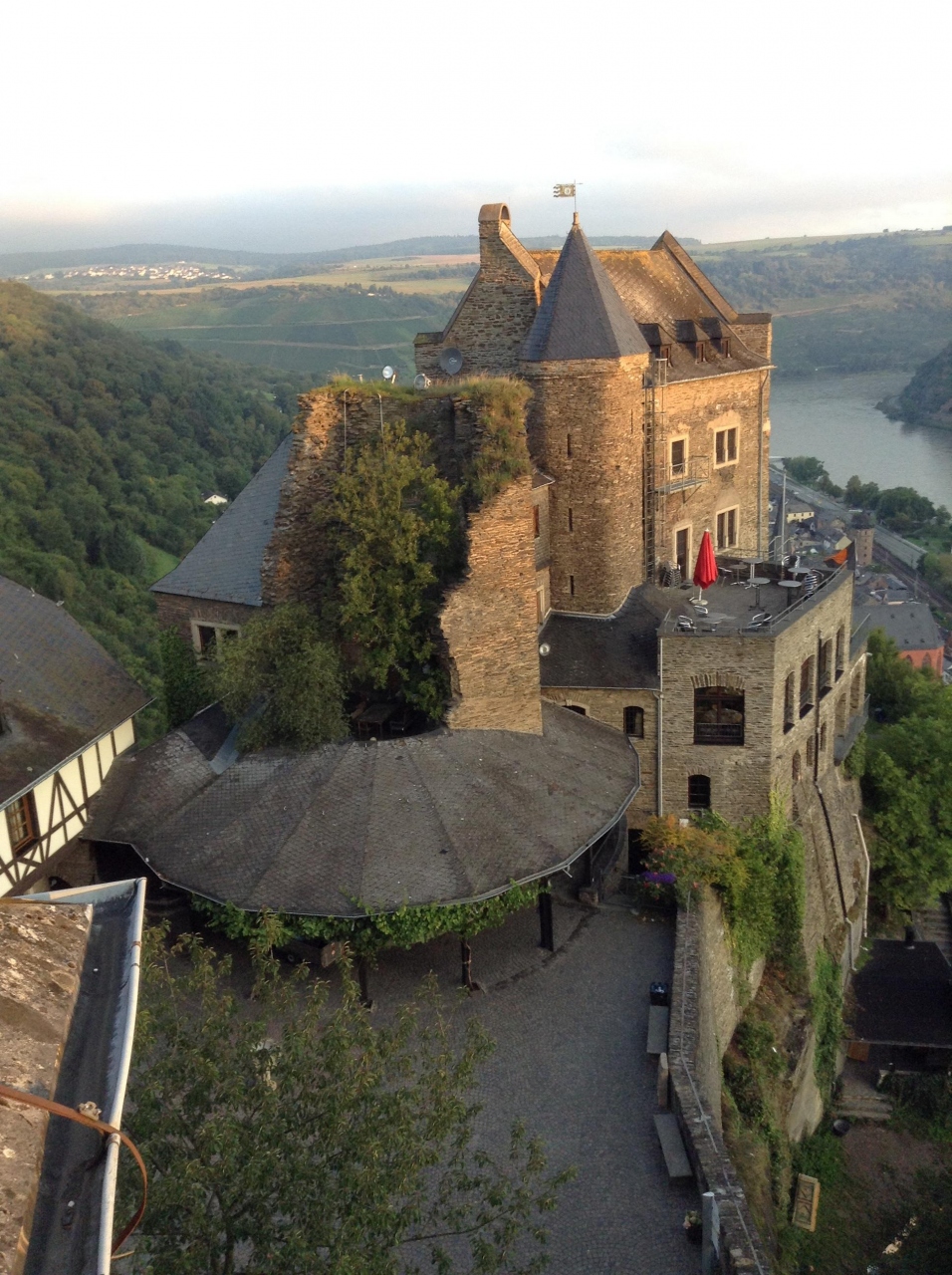 美しい城越しのぶどう畑やライン川、ライン川を行き来する色んな船舶、ライン川の両脇には線路があり、貨物列車多めに行き交っていました。少し夜はうるさいですが、それを超える絶景。