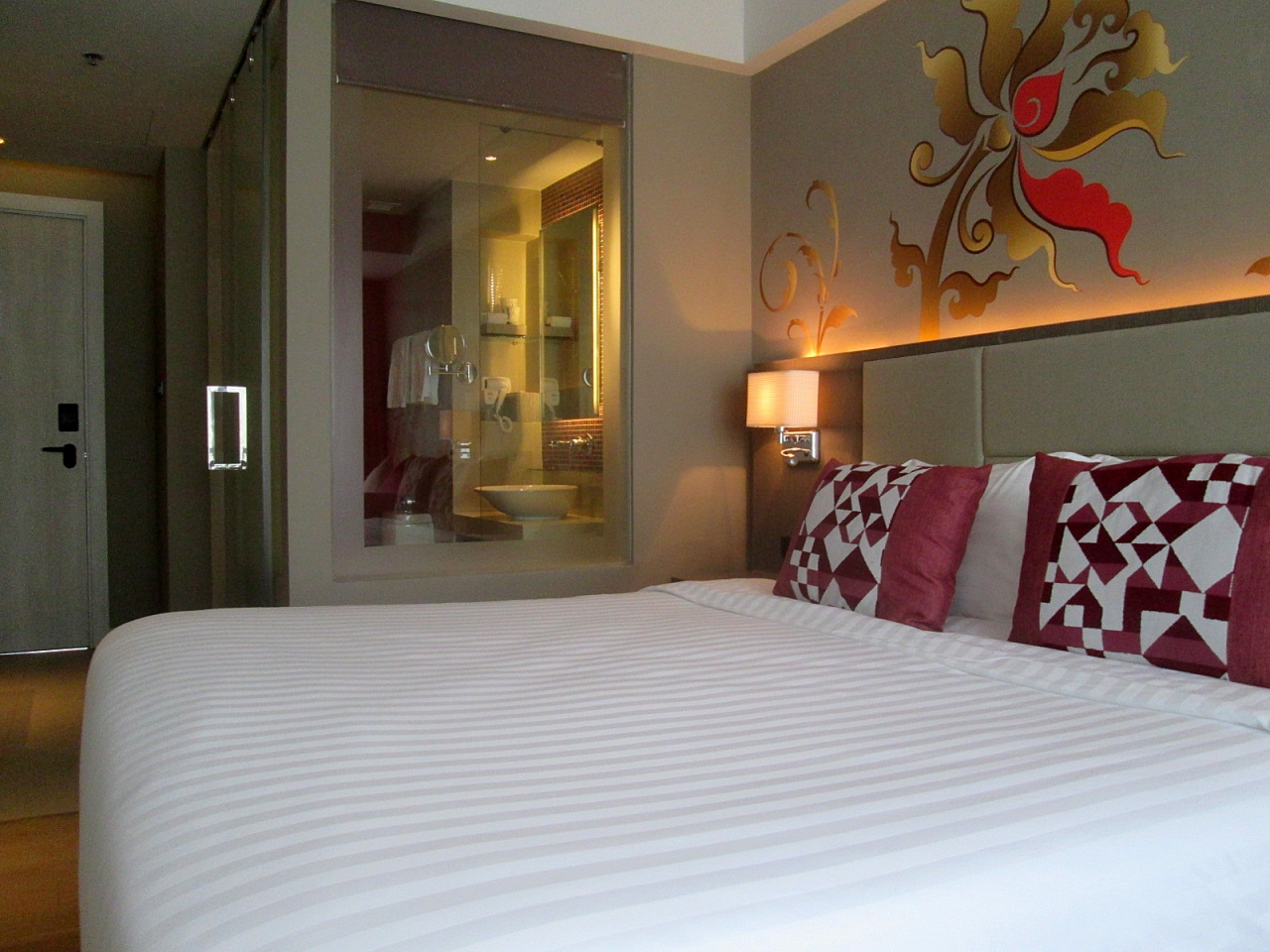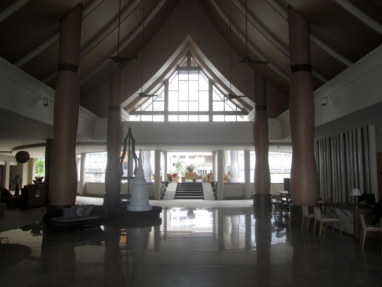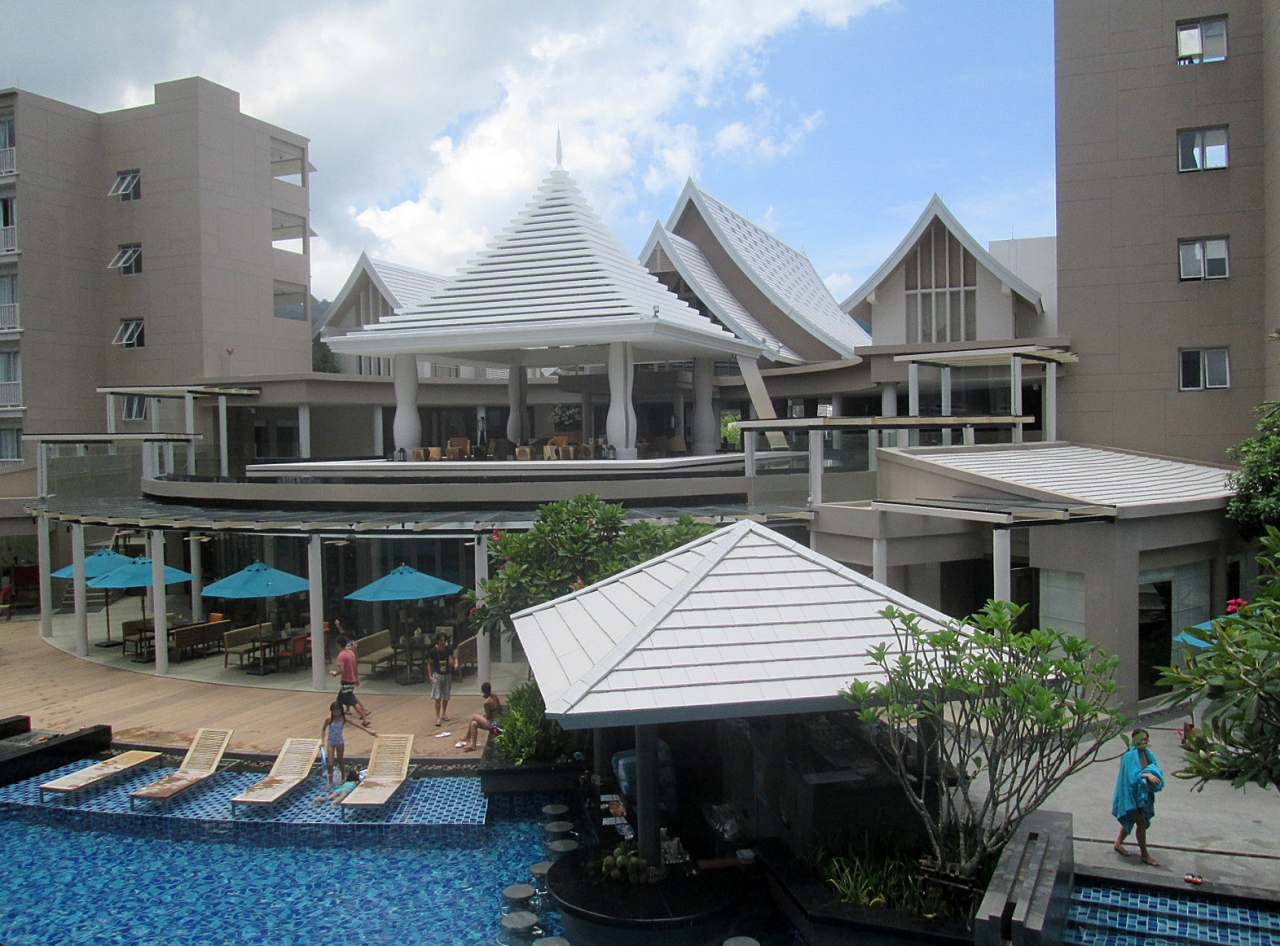 「メリディアン・プーケット・ビーチリゾート」でゆっくり過ごした後、夜遊び・買物目的でパトンの街に1泊だけしようと思っていたところ、このホテルのオープニングレートを見つけて予約しました。パトンの町の中心と言えば「ジャンクセイロン・ショッピングセンター」やバングラ通りになりますが、その周辺とは「歩ける距離ではあるけれど、日中は絶対歩きたくない」程の距離があります。そこでホテル→パトンビーチ→「ジャンクセイロン・ショッピングセンター」というコースのフリーシャトルもあるのですが1日に4本のみ(その内2本は「ジャンクセイロン・ショッピングセンター」直行)ですし、なんと利用できるのはホテル発のみで、ホテルに戻るシャトルには乗車できないという中途半端なサービスです。ホテルそのものは新築ですから、さすがに綺麗ですが、グランドオープン後の現在も一部は工事中でした。タイ伝統様式を取り入れたロビーは立派で、到着時には冷たいおしぼりとウェルカムドリンク、そして小菓子も置かれるサービスは素晴らしいと思います。ただロビーに次々と到着するのは韓国・中東系が圧倒的で、少しビビリました。ホテルの造りの特徴は、コの字型の宿泊棟沿いに造られた川のようなプールで、客室1階部分はテラスから直接プールにアクセスできるようになっています。私が予約したのは最も安価な客室カテゴリーであるスーペリアルームでしたから、2階部分の客室にアサインされました。スタッフにエスコートされて客室に向かったのですが、外廊下は安アパート集合地域に隣接していますから、リゾート気分は削がれました(客室の場所次第だとは思いますが)。さて客室に到着するもカードキーが作動せずドアが開きません。たまたま通りかかった客室係のキーで入室。「新しいカードキーを持ってきます」と言って立ち去ったスタッフは結局カードキーを持って来ず。客室内は新築の香りがするほどピカピカですし、デザインは新規開業メルキュール共通のもので、フランスのエスプリを感じられます。バスルームも大きくはないですが、客室側に大きく開いた窓もあって圧迫感はありませんし、バスタブは大きめでした。ただバスタブにはカーテンがありませんから、床がビショビショになる可能性はあるかも…。しばらくしてレセプションデスクに出向いて新しいカードキーをもらうも作動せず、再びレセプションへ。結局ドア内部のロックのバッテリーが限界だったということで、バーラウンジでコーヒーをサービスしていただきんながら修理を待つことになりました。しばらくして「交換しました」とのことで安心したのですが、翌日の朝食後もまたまた反応せず。館内電話も見つからないため、いったい何度レセプションデスクに出向いたことか…。普通であれば、新しい客室を用意するレベルの不都合だと思いますが、そうした提案は示されず。ストレス溜まりまくりの宿泊になりました。…これからのホテルなのでしょうから今後に期待したいと思います。