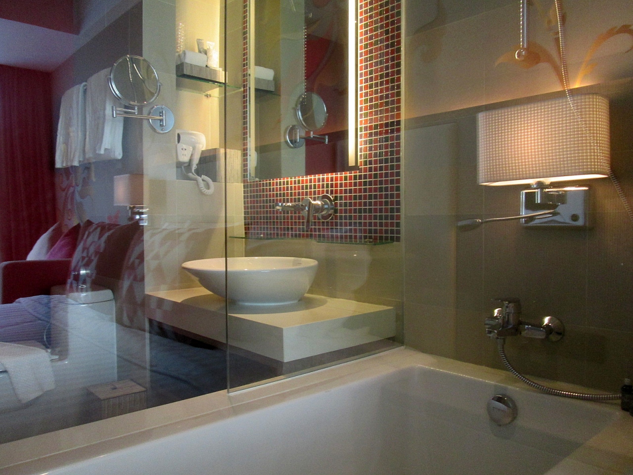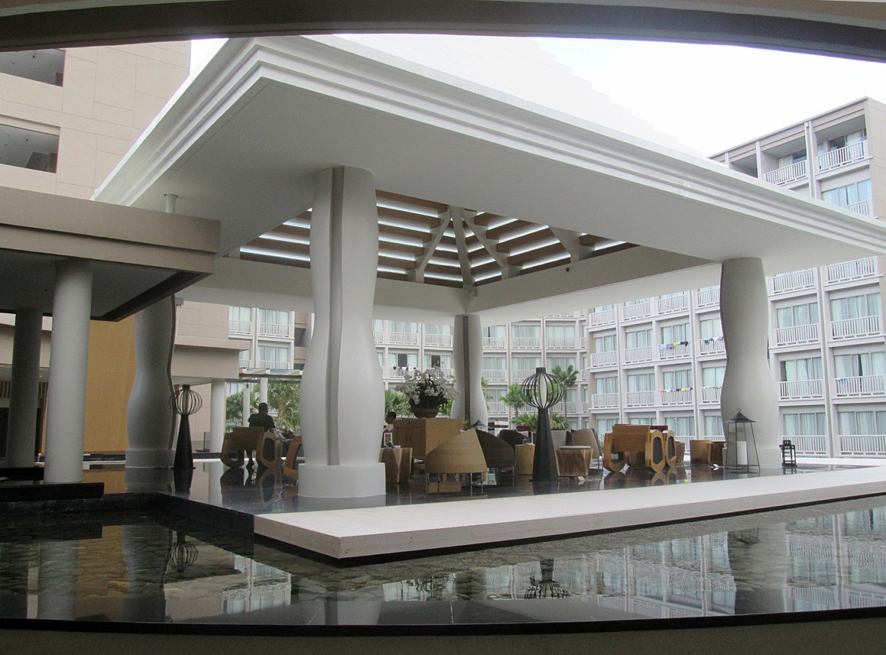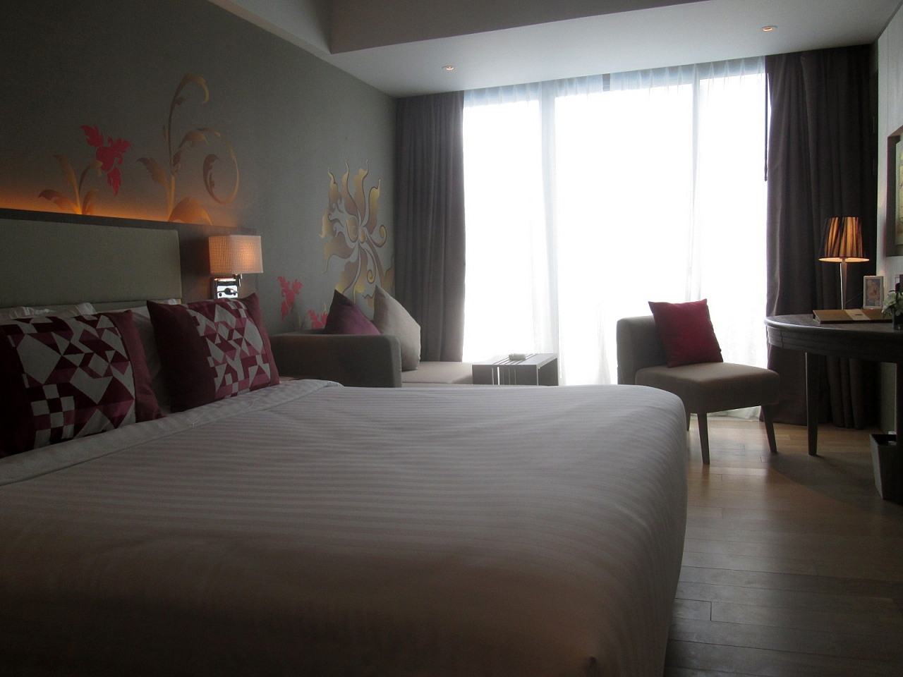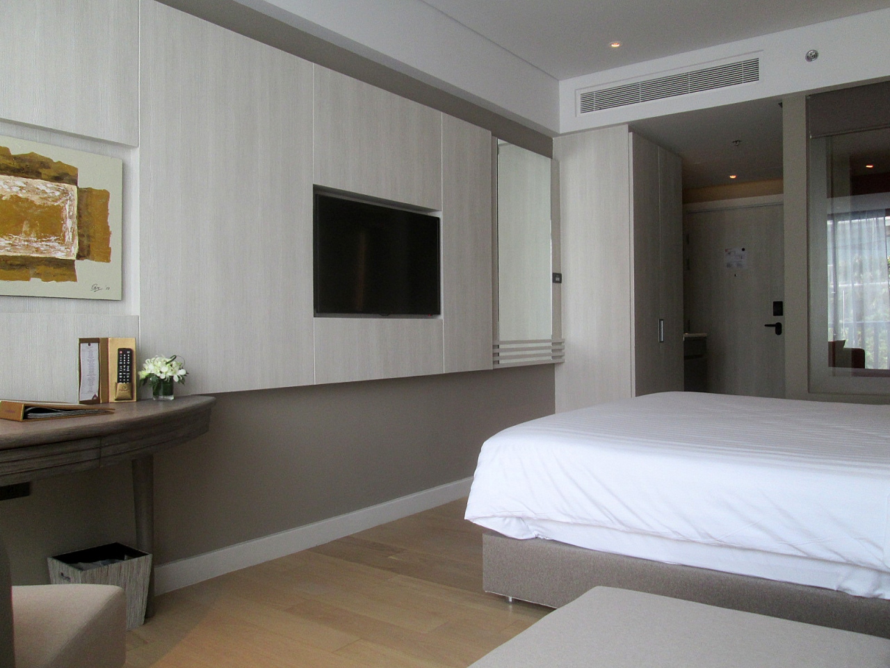 「メリディアン・プーケット・ビーチリゾート」でゆっくり過ごした後、夜遊び・買物目的でパトンの街に1泊だけしようと思っていたところ、このホテルのオープニングレートを見つけて予約しました。パトンの町の中心と言えば「ジャンクセイロン・ショッピングセンター」やバングラ通りになりますが、その周辺とは「歩ける距離ではあるけれど、日中は絶対歩きたくない」程の距離があります。そこでホテル→パトンビーチ→「ジャンクセイロン・ショッピングセンター」というコースのフリーシャトルもあるのですが1日に4本のみ(その内2本は「ジャンクセイロン・ショッピングセンター」直行)ですし、なんと利用できるのはホテル発のみで、ホテルに戻るシャトルには乗車できないという中途半端なサービスです。ホテルそのものは新築ですから、さすがに綺麗ですが、グランドオープン後の現在も一部は工事中でした。タイ伝統様式を取り入れたロビーは立派で、到着時には冷たいおしぼりとウェルカムドリンク、そして小菓子も置かれるサービスは素晴らしいと思います。ただロビーに次々と到着するのは韓国・中東系が圧倒的で、少しビビリました。ホテルの造りの特徴は、コの字型の宿泊棟沿いに造られた川のようなプールで、客室1階部分はテラスから直接プールにアクセスできるようになっています。私が予約したのは最も安価な客室カテゴリーであるスーペリアルームでしたから、2階部分の客室にアサインされました。スタッフにエスコートされて客室に向かったのですが、外廊下は安アパート集合地域に隣接していますから、リゾート気分は削がれました(客室の場所次第だとは思いますが)。さて客室に到着するもカードキーが作動せずドアが開きません。たまたま通りかかった客室係のキーで入室。「新しいカードキーを持ってきます」と言って立ち去ったスタッフは結局カードキーを持って来ず。客室内は新築の香りがするほどピカピカですし、デザインは新規開業メルキュール共通のもので、フランスのエスプリを感じられます。バスルームも大きくはないですが、客室側に大きく開いた窓もあって圧迫感はありませんし、バスタブは大きめでした。ただバスタブにはカーテンがありませんから、床がビショビショになる可能性はあるかも…。しばらくしてレセプションデスクに出向いて新しいカードキーをもらうも作動せず、再びレセプションへ。結局ドア内部のロックのバッテリーが限界だったということで、バーラウンジでコーヒーをサービスしていただきんながら修理を待つことになりました。しばらくして「交換しました」とのことで安心したのですが、翌日の朝食後もまたまた反応せず。館内電話も見つからないため、いったい何度レセプションデスクに出向いたことか…。普通であれば、新しい客室を用意するレベルの不都合だと思いますが、そうした提案は示されず。ストレス溜まりまくりの宿泊になりました。…これからのホテルなのでしょうから今後に期待したいと思います。