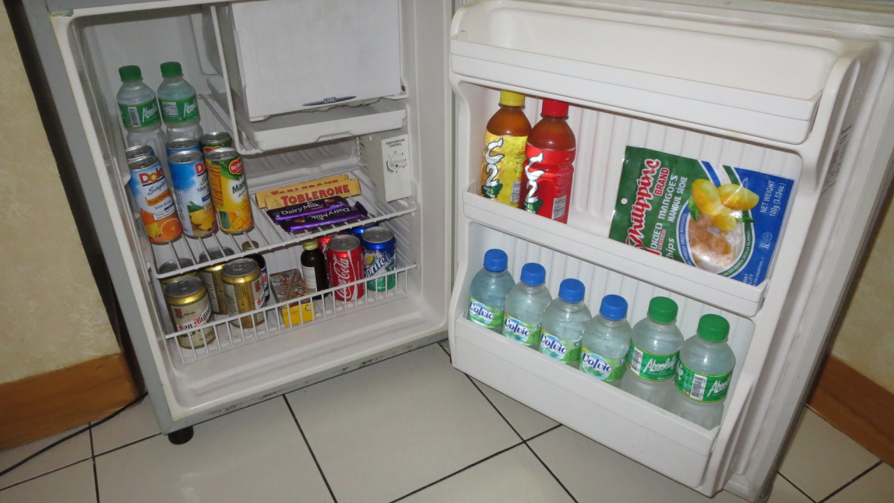 東南アジアのホテルだと、無料のお水がだいたい置いてあるのですが、こちらには無く、冷蔵庫のボトルを思い込みで1本飲んでしまい、45ペソ払うことになりました。