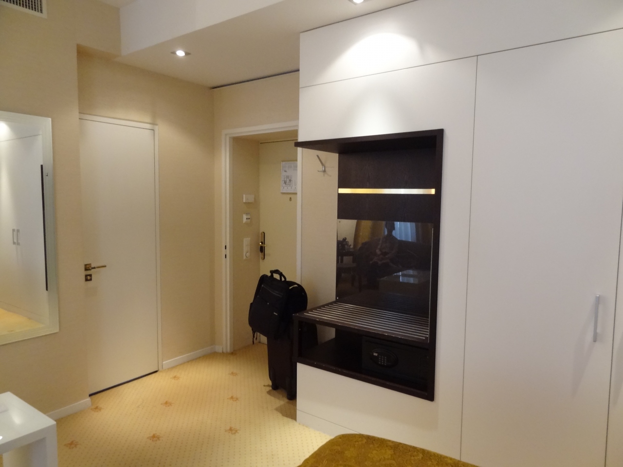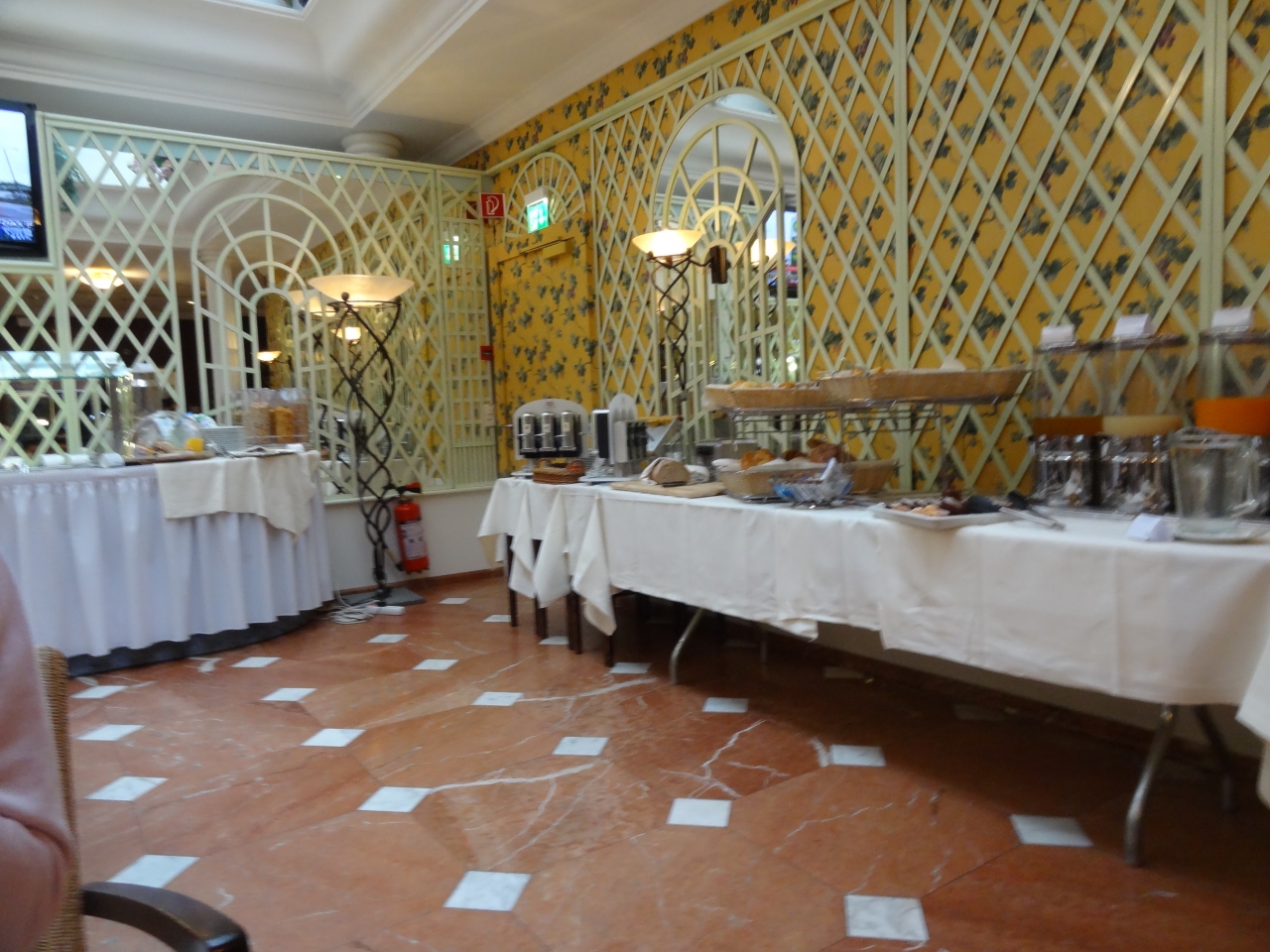駅に近く、駅前の5星のシュバイツァーホテルの裏手にあり至極便利。 ホテルの横がバーンホフ通りでお買いもには好適。 4星なのに、バスローブがあるのは珍しい。 フロント近くに2台あるエレベータは、二人と荷物で一杯になるほど狭い。