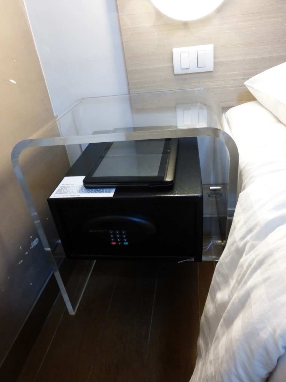 ・今回の部屋はセキュリティーボックスは大きめでA4ノートパソコンがらくらく入りました。