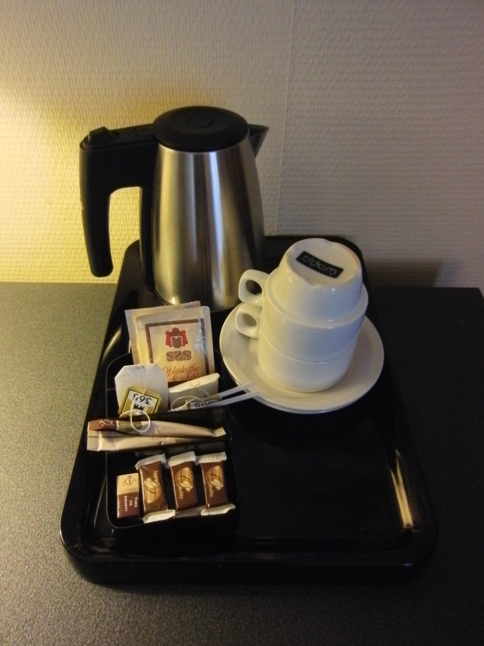 運河沿いの静かなホテルです。「旧市街に位置するSクラスホテル」とツアーパンフにありましたが、ゲントの門やアストリッド女王公園に近く、旧市街の鐘楼などには徒歩10~15分位の位置です。朝食はロビー奥に並び団体さんには椅子が少な目でした。
