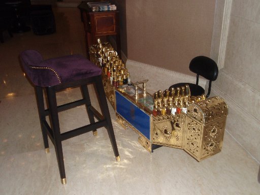 ☆ロビーに置かれたピカピカの物体は?トルコ特有の靴磨き台であった。素晴らしく目を引く面白さ!これでガムラン演奏でも出来そうね!とにっこりしてしまう。