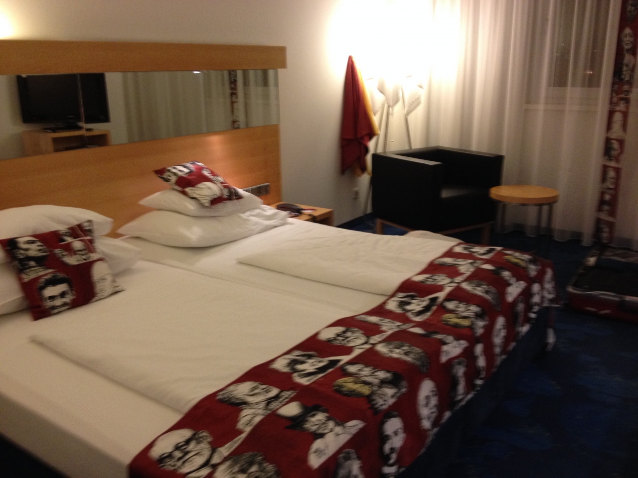 部屋は、ファブリックの柄がユニークだが、それ以外は普通のホテルといった感じ。南側に大きく窓があるが、あまりいい景色は臨めない。バスタブがないところばかりに泊まっていたので、バスタブはとてもうれしかった。