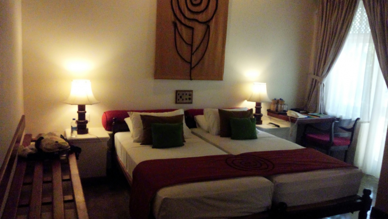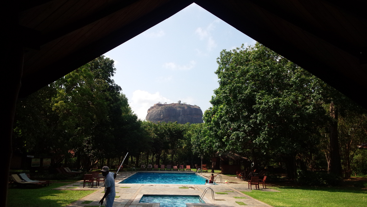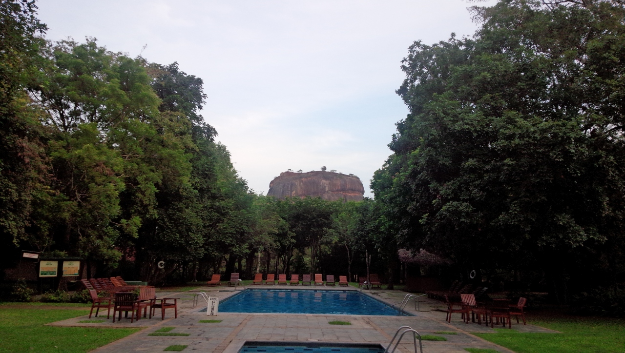 シーギリヤロックが近いのでプール越しにシーギリヤロックを眺めることができます。シーギリヤロックのチケット売り場までは歩いて30分くらいかかりました。