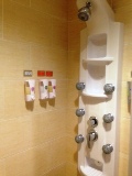 ビジネス利用としては問題ありません。ベッド周りに電源コンセントが多数あり携帯電話の充電には便利でした。バスルームはなし。シャワーのみですが、噴出し口が多数あるタイプで遊べます(笑)このホテルの特徴は、ケーキ、アイスクリーム、珈琲などなどが