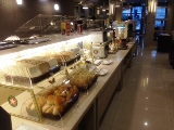 全部無料です。ケーキはフロント前の冷ケースの置かれており、24時間利用出来るようです。パソコンも2台1階フロアに設置されており自由に使えます。朝食も種類は少ないですが付いてます。(中華系料理)レンタルサイクルも完備。徒歩圏内の六号夜市、マッサージ、コンビニもあります。空港まではタクシーで15分程度。高鉄の左営駅は30分程度かかります。