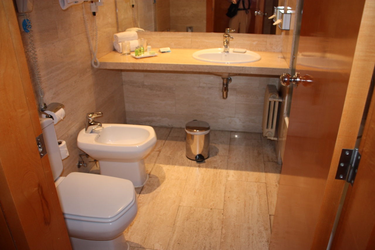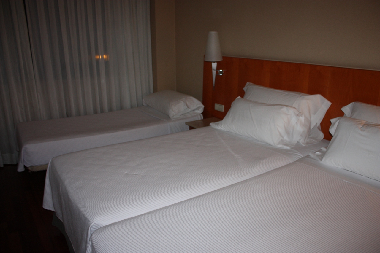 スペインツァーの最後の2日間利用しました。ホテルの前にバス停があったり、徒歩5分程度のところにスーパーがあったりとよい環境に立地しています。部屋は清潔に保たれており落ち着いた雰囲気の内装が施されています。3ベッドだったためにスーツケースを広げるのに難儀しました。朝食は一通りのものが提供されていましたが、ハムとチーズには飽きがきていたせいか感動はありませんでした。このホテルにもバスタブの仕切りは半分だけのガラスのみでシャワーカーテンもなくちょっと気を遣いました。