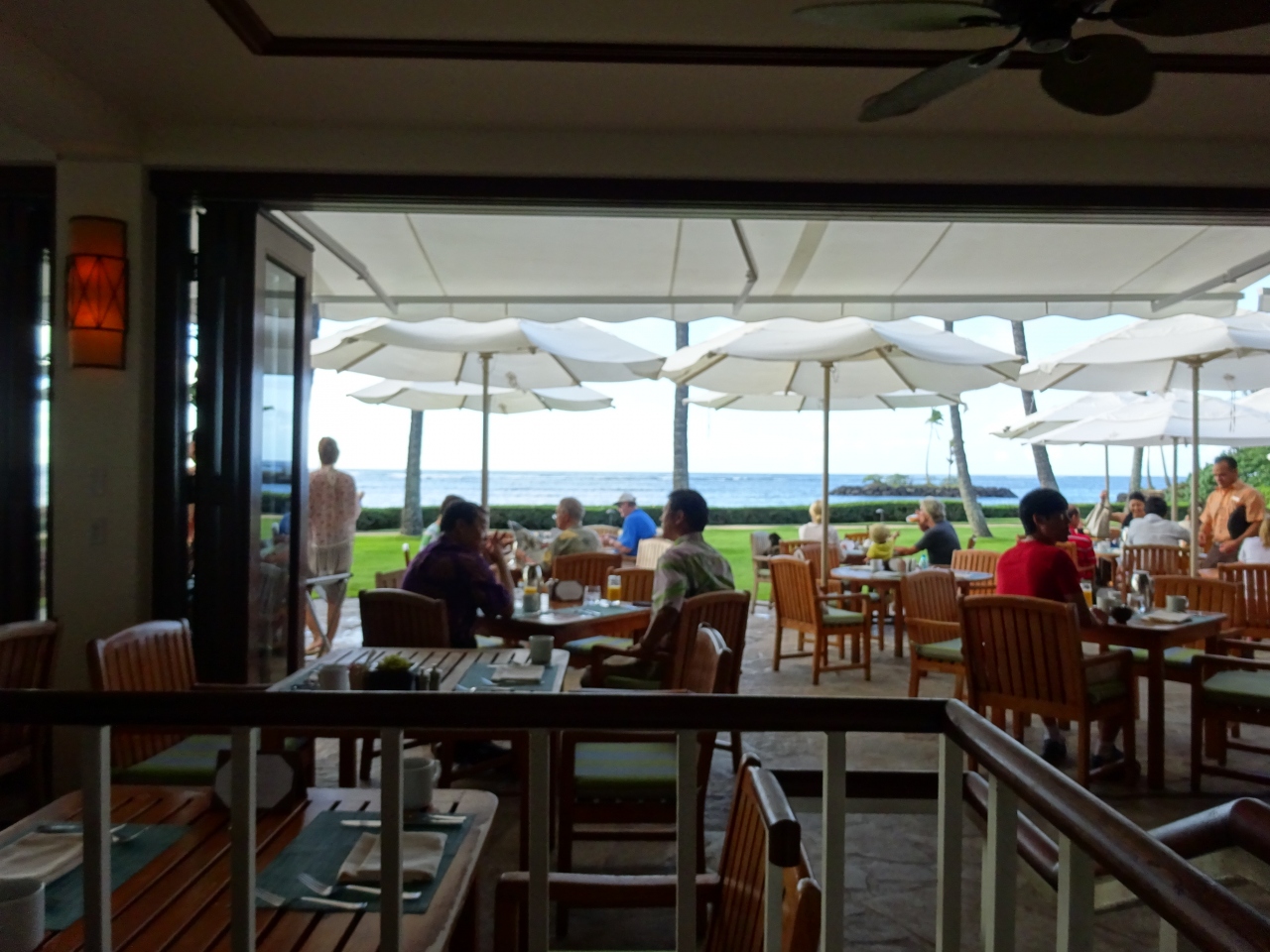 海を見ながらの朝食はとても気持ちが良いです。卵料理のカウンターは混みあいますので利用したい方は早めに起きた方がよいかもしれません。クルクルと巻かれたパンケーキとアサイーのシャーベットが美味しかったです。